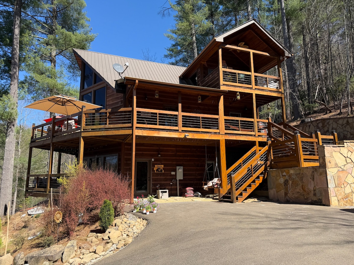 Have a relaxing getaway in the beautiful Smoky Mountains! This Mountain Chalet boasts breathtaking views & fun activities. Experience the best of Lake Hiwassee, one of NC’s best kept secrets. Bear Paw Resort has pickleball, tennis, a pool, basketball, volleyball, fishing, and a Marina with boat rentals. Trout fish famous scenic rivers nearby! Relax in a Spa like setting with our Therapeutic Hot Tub while the waterfall runs as you enjoy the sunset. Game room, mountain bikes, kayaks, etc.. Enjoy!