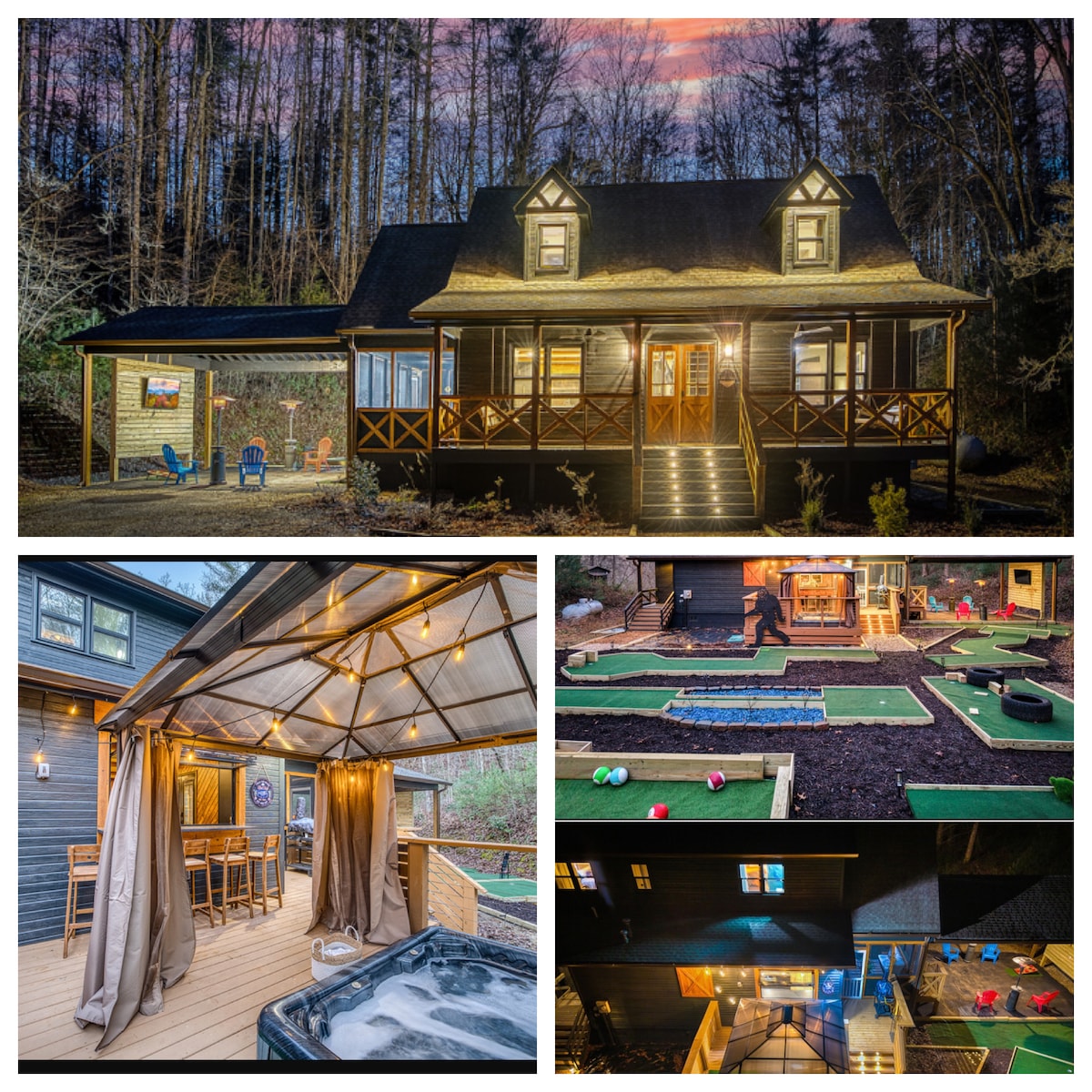 This 3-bedroom home is in a prime location & has EVERYTHING you need for an amazing vacation in Ellijay, GA! • Expansive Deck w/ Stunning Views! • Fire Pit • Hot Tub (Salt water, 7-seater & self-cleaning) • Outdoor Patio/Dining • BBQ Grill • Game Room & Home Gym: Treadmill, Pool Table & Arcade Games • Movie Theater • Board & Card Games • Giant Connect 4 • Fully Stocked Kitchen • Basement: Dedicated Workspace + Queen Murphy Bed • Family Friendly • High Speed WIFI • 2 EV Chargers