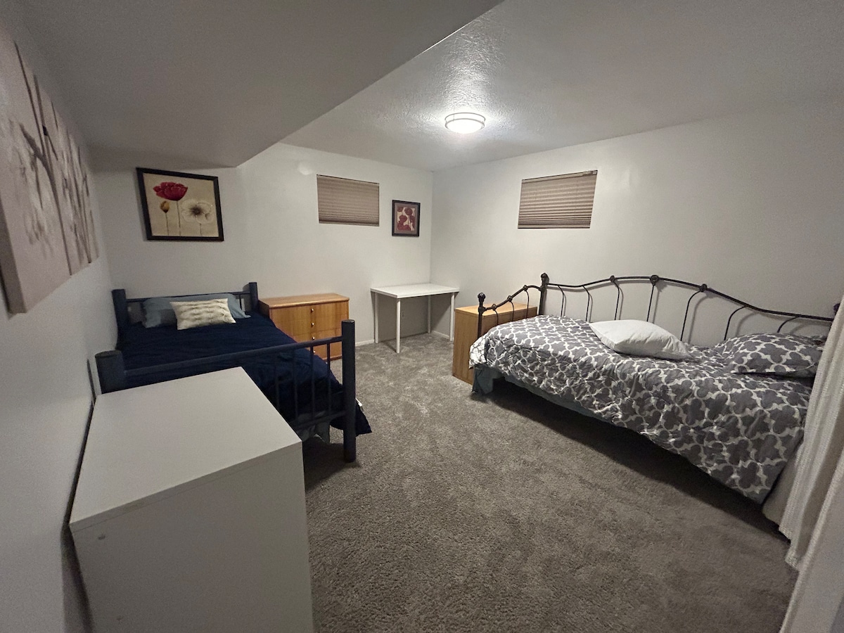 This is a one bedroom basement apartment, with its own private space and entrance! WE DO LIVE UPSTAIRS FULL-TIME. (this is our home and some noise/footsteps should be expected) We’re conscious of our guests and keep quiet. The home is located in a safe cul-de-sac with plenty of street parking. The Apartment features a fully stocked kitchen, bathroom, Queen bed, Huge TV, and a large living room space. Make yourself at home in the spacious backyard including a basketball court and swing set.