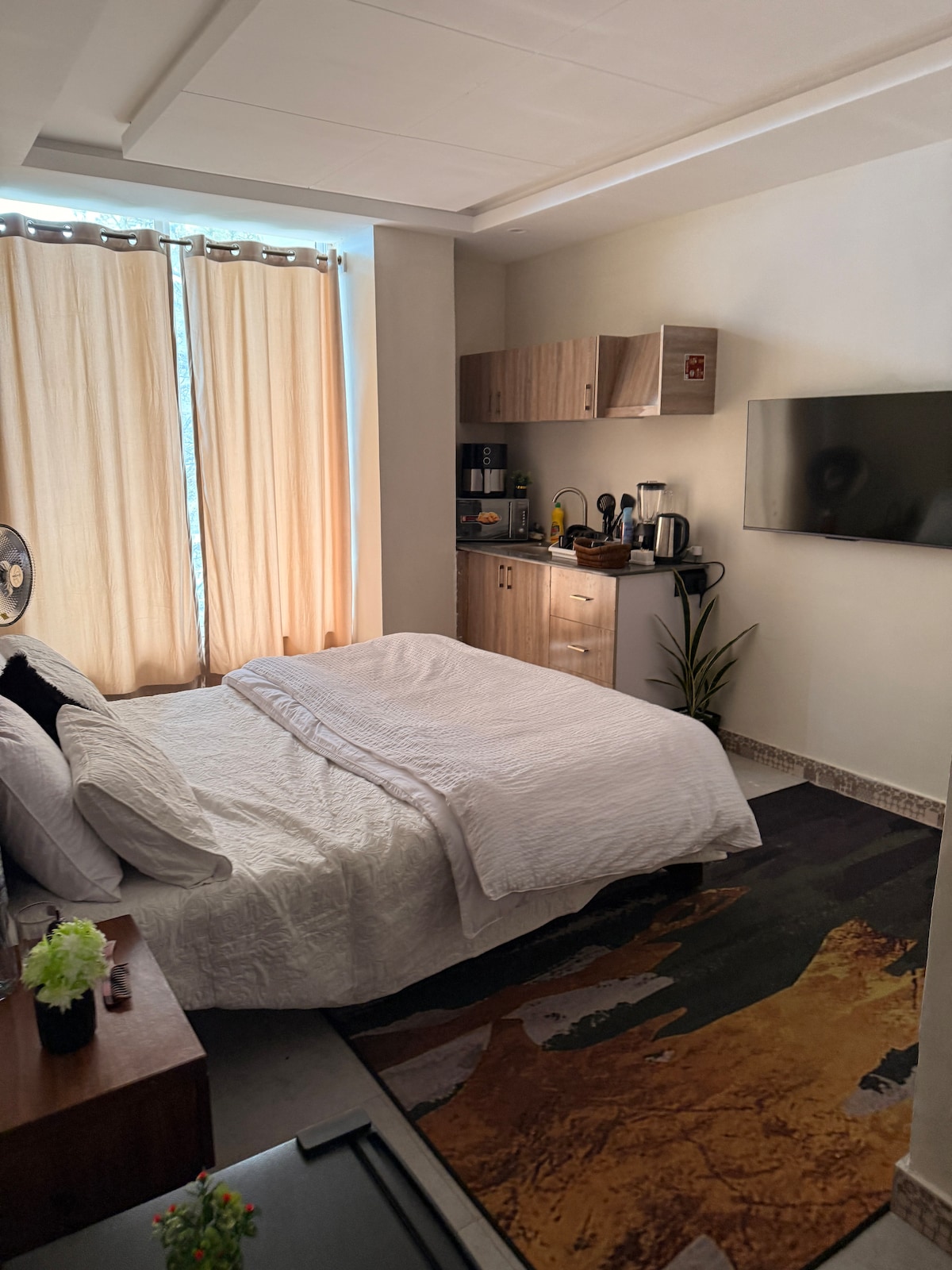Enjoy a cozy studio with beautiful mountain views at an affordable price. Located just 8 km from Lower Topa and a short drive to Mall Road. Relax on a comfy king bed, enjoy fast Wi-Fi, Smart TV, and a clean modern interior. The apartment includes a ready-to-use kitchen, hot water for peaceful mornings. Perfect for couples, tourists, and travelers. Full private access, no shared spaces. We have two Rooms within the same category. The available room (410,411) at time of check-in will be allocated.