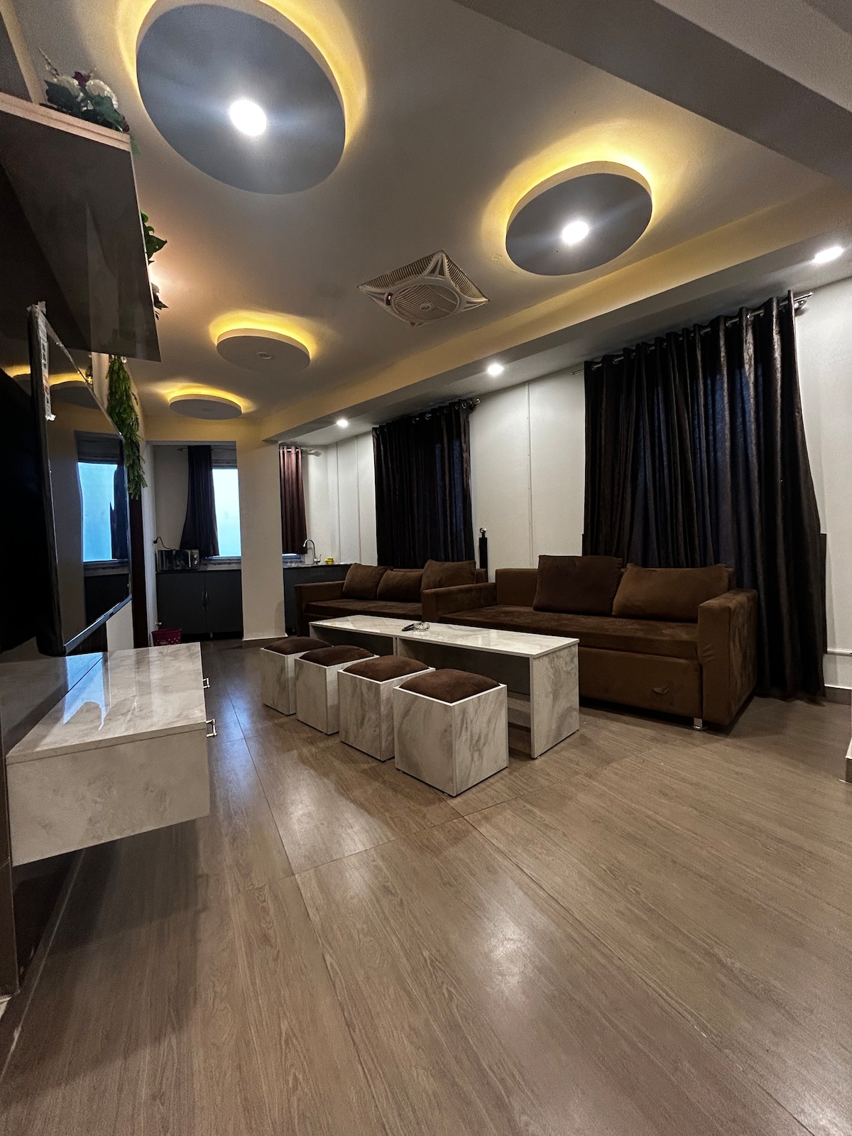 Luxe Loft Stylish 3-Bed Apartment in Murree Enjoy a peaceful stay in this uniquely designed 3-bed apartment near MIT, Lower Jhika Gali Road. Features 2 king beds, 2 single beds, open-plan kitchen & lounge, smart TV, large terrace with mountain views, 24/7 security, UPS backup, and free parking. Cook & driver accommodation available at extra charge. Couples & families only. 5 minutes to Jhika Gali Bazaar, 10 minutes to Mall Road.