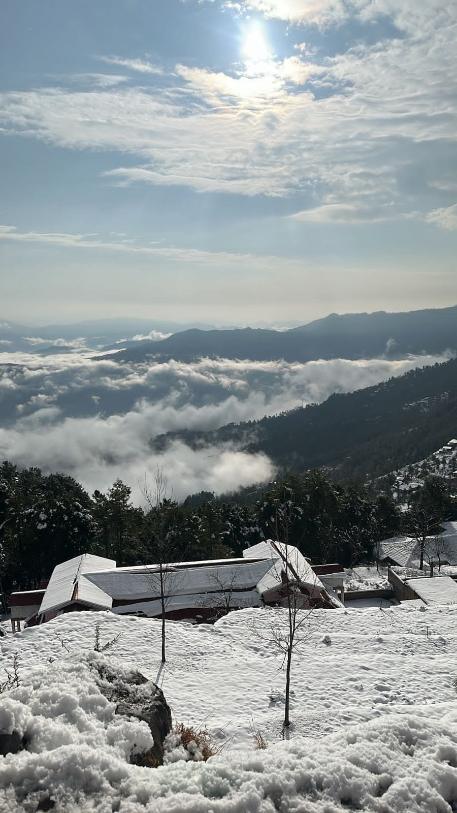 Escape to a luxurious mountain retreat perched at 5,540 ft above sea level, where comfort meets nature. Enjoy secure parking, power backup (UPS + solar), and 24/7 hot water. Cook in a fully equipped kitchen, unwind by the fireplace, or stream your favorites on the smart TV. Soak in stunning mountain views as kids play on the seesaw and slide, then gather around a bonfire for BBQ under the stars.