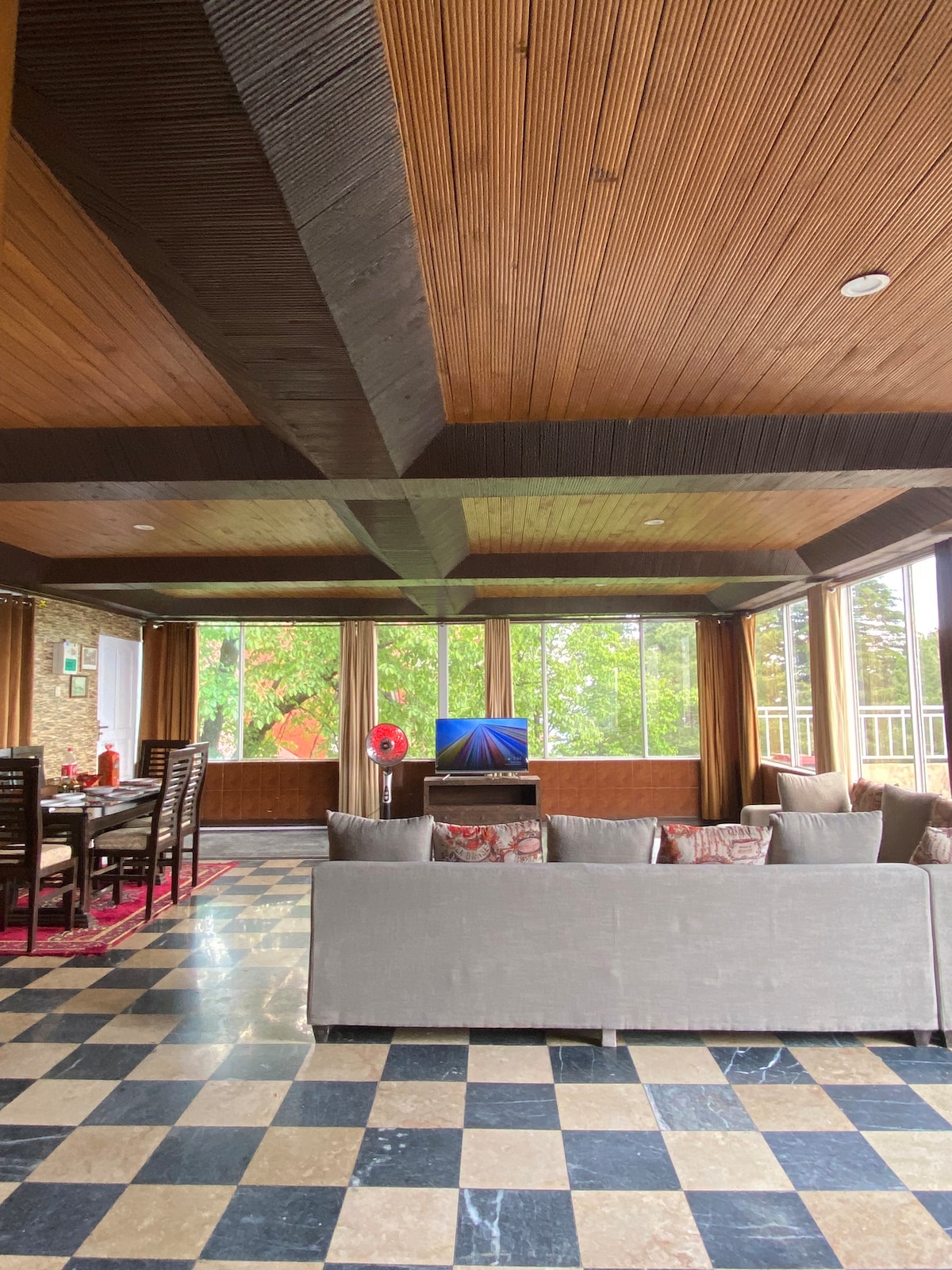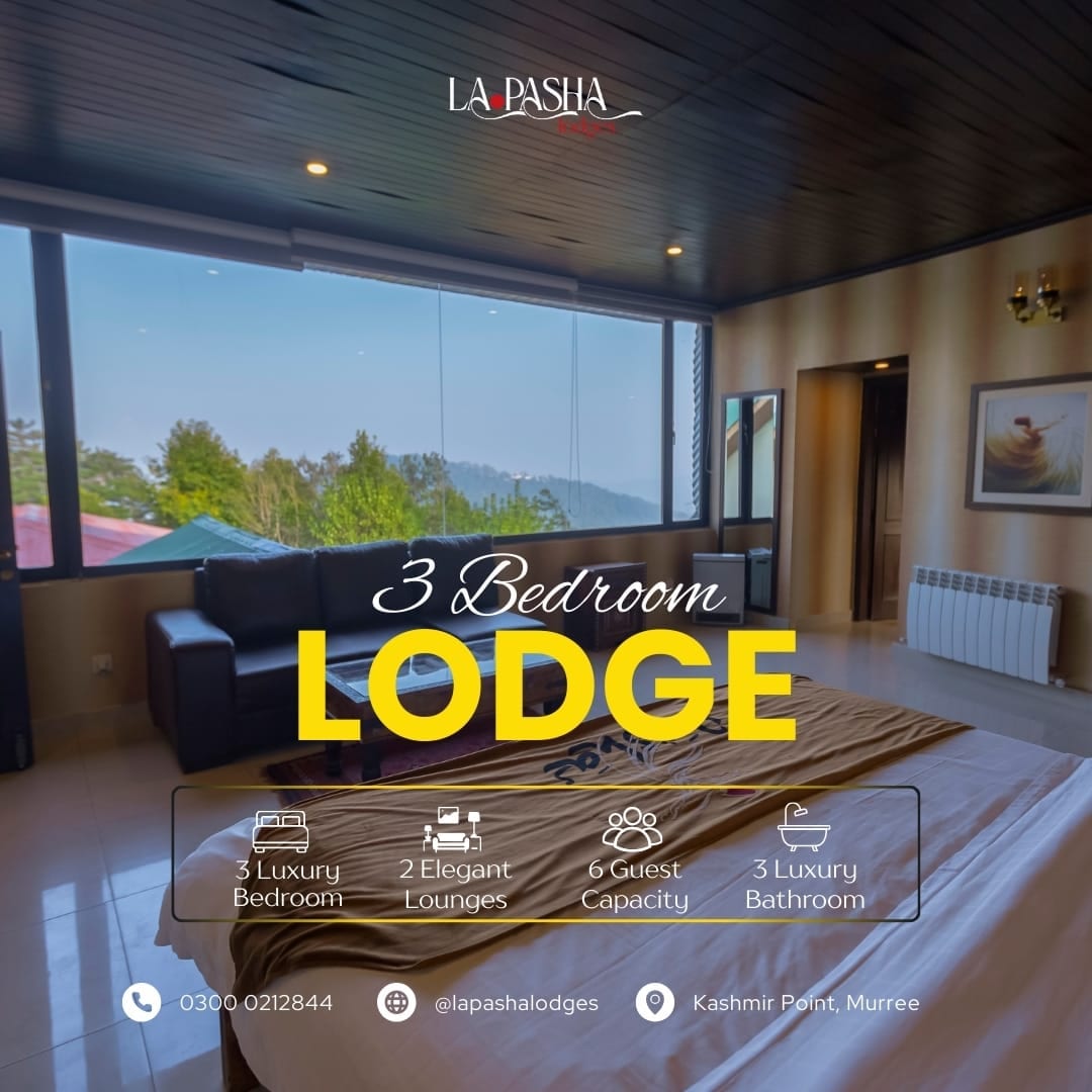 Welcome to your luxurious 2BR retreat in Murree! • 🌄 Panoramic Views & Ethnic Sunroom • 📍 Each and Every Major Attraction, Café & Restaurant Within 10 Mins • 🍽 Fully Equipped Kitchen • 🛏 Elegant Bedrooms, Cozy Lounge • 🚗 Main Road Access & Gated Parking • ❄ Snow Cleared Every 15 Mins • 👨💼 Dedicated 24/7 Caretaker • 🥐 Cook for Breakfast • ☕ Bread & Butter, Subway, Dunkin’ Donuts at walking distance • 📐 Sprawling 2,800 sqft with only 2 bedrooms — exceptionally spacious