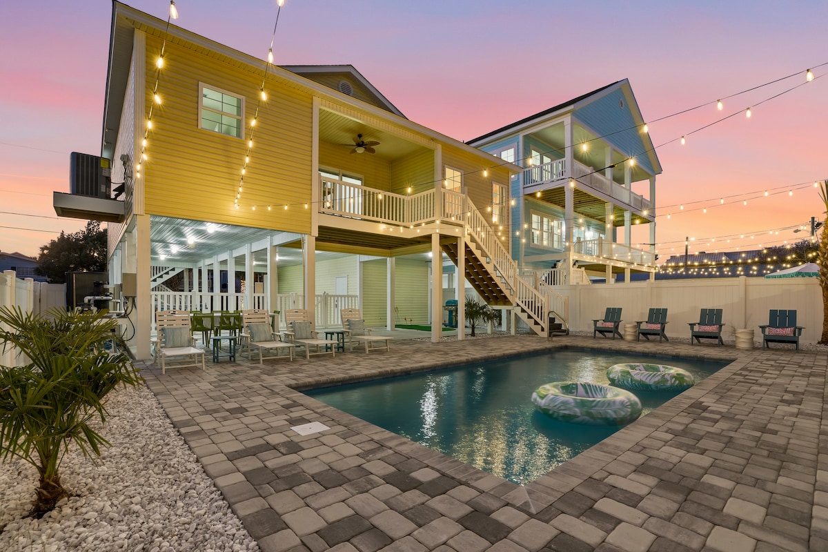 This 2nd row 5000 sqft beach house is now cleaned with HOSPITAL GRADE DISINFECTANTS! Enjoy 6 spacious bedrooms & 6.5 bathrooms accommodating 22 guest! Beach access from the front door takes less than 3 minutes to walk! Fire up the grill or lounge poolside in the luxury of your own back patio. Private, pool, big screen TV, numerous other TV's & DVD players, large equipped kitchen (newly renovated), washer/dryer, high speed internet, elevator, grandparent friendly!