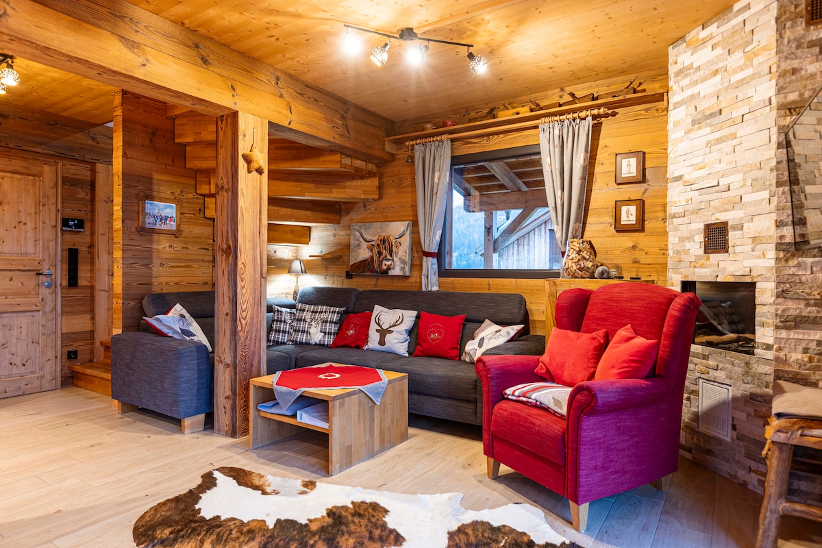 Located in the centre of the room of your chalet is the modern kitchen, equipped with all desirable appliances. Around the cosy fireplace you can relax on the large corner sofa with a large flat screen television. On the other side is the dining table with ample space for 8 people and surrounded by windows which gives a nice view over the mountains, while you sit inside in comfort. There is plenty of opportunity to relax together or to unwind in the infra-red sauna after an active day Newly ...