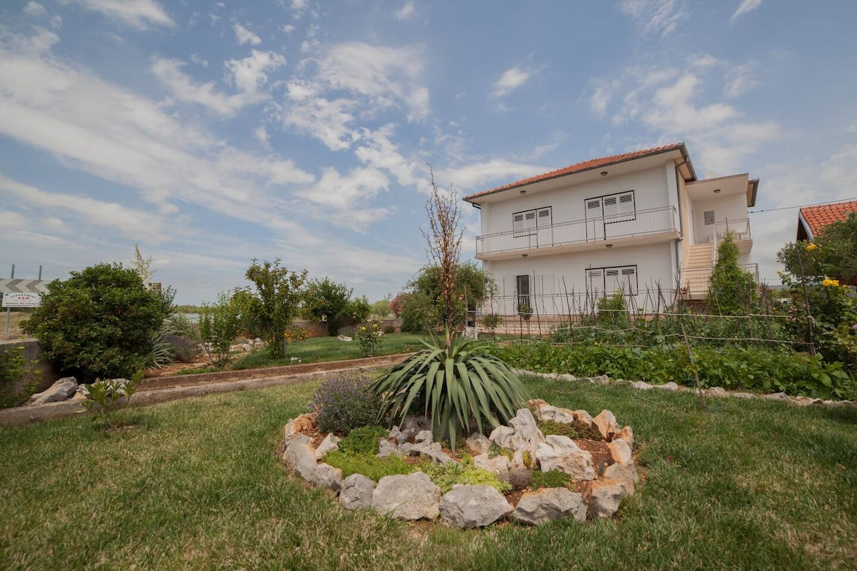 Welcome to our cozy apartment aptly named Nostalgija! Beautifully decorated by someone with a passion and an eye for detail, we tried to blend vintage charm, traditional ornaments, and elements of our heritage with modern retro-style amenities This newly furnished apartment features a spacious yard and garden, free parking, Wi-Fi, and air conditioning. It comfortably accommodates 4 guests + a child (we can provide a baby cot if needed).We are just 15-20 mins from the nearest beaches in the area!
