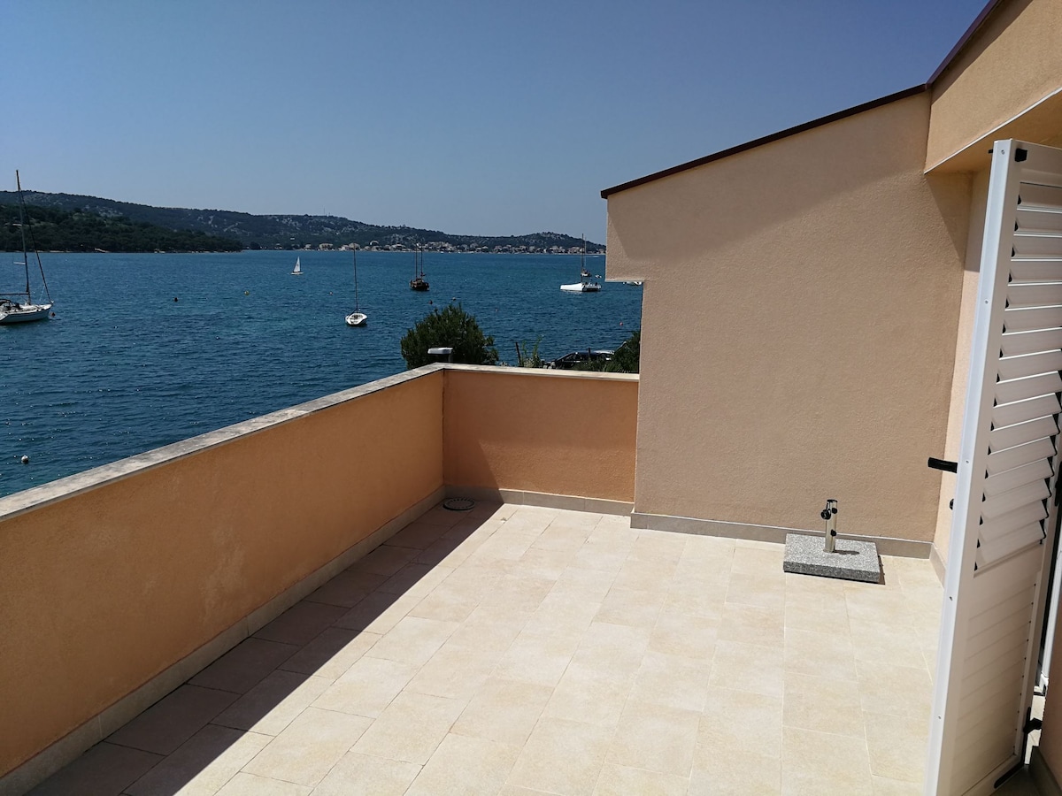 Apartman Andrija is located at the sea with a stunning view on the island of Murter. It is a spacious apartment 70m2 with terrace 20m2. Apartman is close to the beach (5min walk) and nightlife - Garden festival (20 min walk/5min with car). It is situated in quiet neighborhood and has a lot of outdoor space. It is perfect for couples, young people and families with kids. Tisno is located between two beautiful National parks Krka rivers and Kornati islands.
