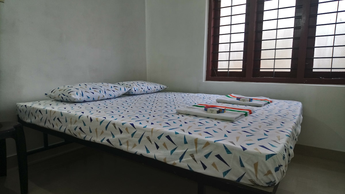 ✨ 1 Bedroom Hall with Kitcen Independent Ground Floor Unit ✨ 🛏️ Bedroom + Attached Washroom | 🌿 Green Views 🍳 Modular Kitchen (Fridge, Induction, Utensils) 🍽️ Dining/Study Table + 🪑 Separate Study Table 📶 Free Wi-Fi | 🧺 Washing Machine 🌳 Spacious Front Yard | 🚗 Parking Inside Premises ☀️ Covered Terrace Space for Relaxation 📍 Near NH66 | 3.5 km Technopark | 2 km Greenfield Stadium/LNCPE/KU | 5 km VSSC | 7 km Lulu Mall | 12 km Airport/Railway ✅ Private • Modern • Well-Connected