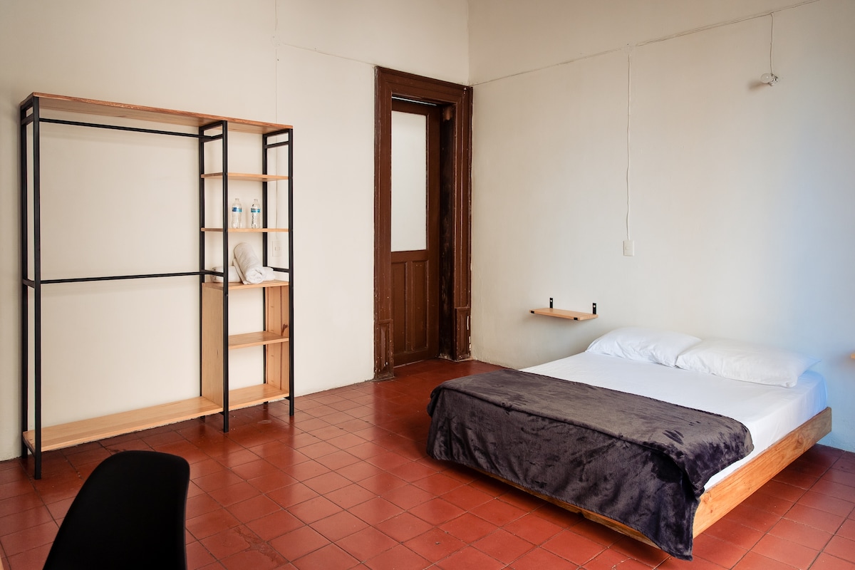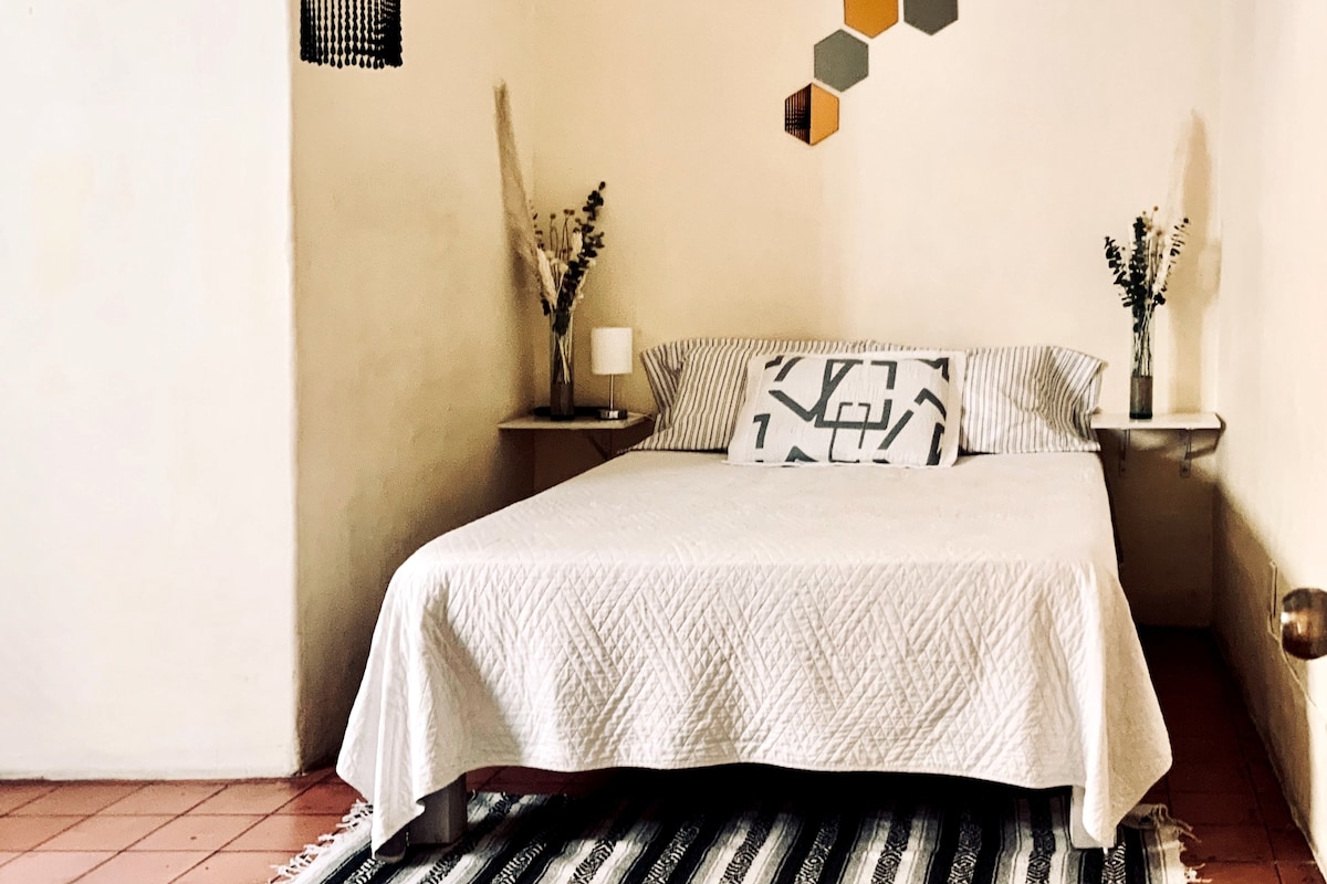 Dale a tus paseos, y a tus días, un punto de partida espectacular, en el que se conjugan diferentes estilos para brindar una experiencia única. Muebles rústicos, llenos de color, le dan vida a este moderno departamento. Su balcón es una joya. El departamento tipo estudio es un espacio abierto donde todas las actividades se intercomunican y sientes mucha amplitud, podrás disfrutar en todo momento del vínculo con la terraza que es a través de un ventanal muy grande que ofrece mucha iluminación al espacio interior y una vista espectacular a la ciudad, se convertirá en tu hogar y nuestro deseo más grande es que lo disfrutes al máximo, te esperamos!! En planta baja existe un Huerto Urbano donde puedes disfrutar de las múltiples variedades de plantas medicinales, comestibles y puedes realizar cosechas orgánicas para tu uso personal y enriquecer tu estancia. Te recomendamos que lo disfrutes ya que es un espacio muy lindo que fue diseñado con mucho cariño, nos encantaría que puedas vivirlo y gozarlo. Te esperamos!!! Para nosotros tu estancia y comodidad es lo más importante y estaremos atentos a cualquier necesidad que tengas para resolverla de inmediato, te esperamos con mucho gusto y disfruta de nuestro departamento que sin duda es tu mejor opción El departamento está ubicado en una zona tranquila, cultural y gastronómica, ideal para experimentar Guadalajara. Está a tres cuadras del Mercado Juárez o el Mercado México, y a 20 minutos caminando del centro histórico. Te recomendamos que puedas moverte y conocer la ciudad caminando, el departamento está perfectamente ubicado para experimentar Guadalajara, muy cerca del centro histórico, el paseo Chapultepec, en una zona tranquila, cultural y gastronómica. Muchos de los atractivos de nuestra hermosa ciudad podrás disfrutarlos sin necesitar gastar tu dinero con algún medio de transporte. La sensación de habitar el departamento es muy grata y acogedora cuando abres los ventanales y el espacio es uno solo integrado con la terraza lo disfrutarás mucho. Por la noche desde la terraza se observa a lo lejos el despegue de los aviones y es un espectáculo que lo puedes gozar. En la calle de libertad o en los alrededores del mercado Juarez (que de la terraza y volteando a la izquierda lo verás a 2 cuadras), podrás gozar de deliciosos desayunos en múltiples cafeterías, la gran mayoría tienen Terrazas con árboles y plantas, experimentaras momentos muy agradables y tranquilos.
