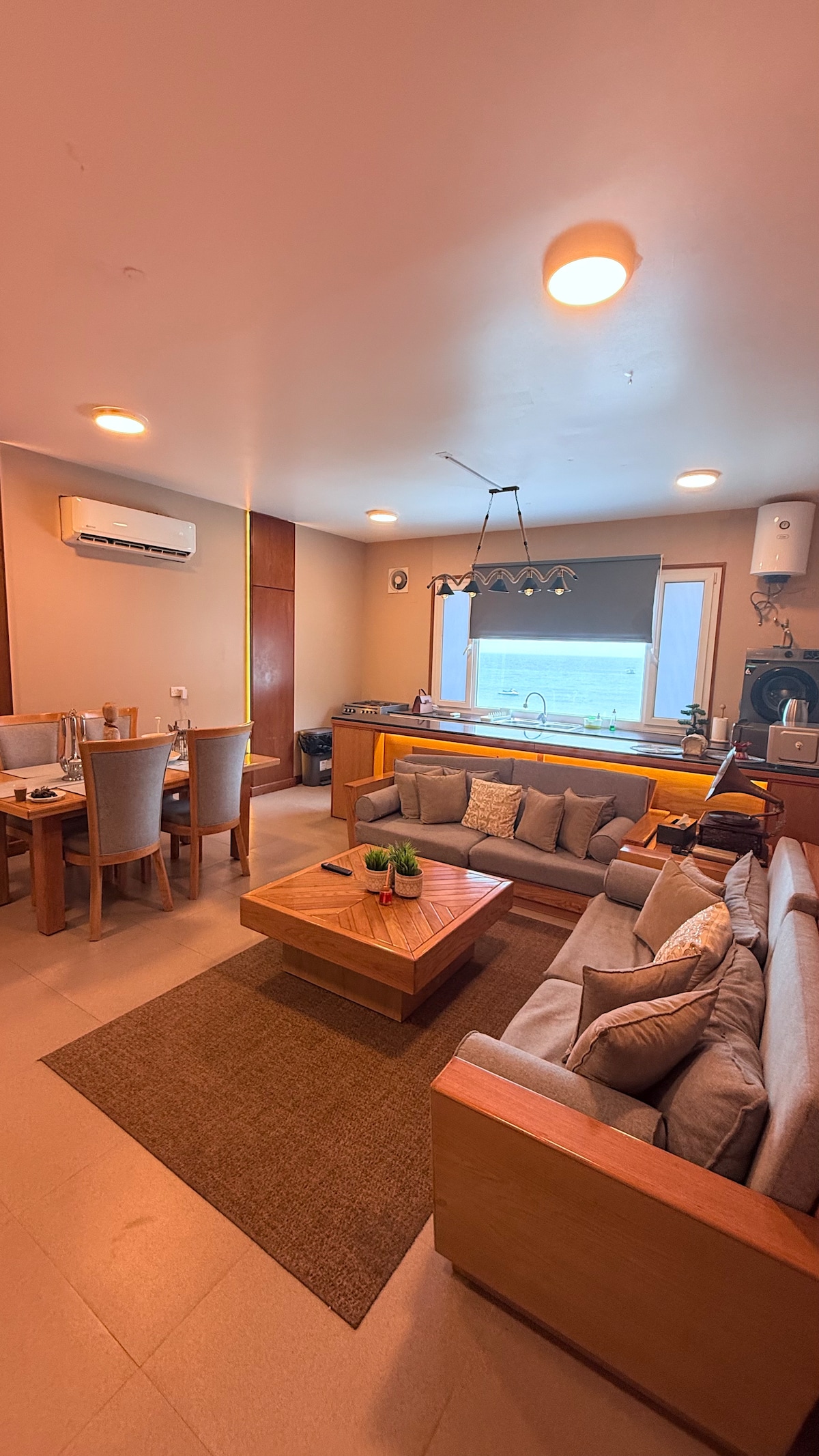 Elite 1 bedroom Apartment in Muscat Bay!exclusive beachfront gated compound. - Direct Access to a Private Beach -Resort-Style Swimming Pool + a vibrant kids’ play area -Cinematic Experience, largest smart TV. -Top-Tier kitchen Appliances in home— outdoor BBQ area. -Dedicated Car parking lot -Fast Wi-Fi -large balcoby with Pool and green view -multi capsule coffee machine -washing machine -super market delivery and cleaners on call note . the pool under maintenance untill 25 January 2025