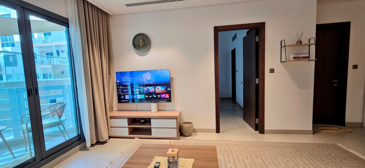 Brand-new apartment in Muscat’s most prestigious seaside neighborhood. Enjoy a peaceful stay just steps from the beach, surrounded by cafés, restaurants, and luxury hotels—at a fraction of the cost. ✔ it is next to Waterfront ✔️Walking distance to the Royal Opera House, W Hotel, and Mandarin Oriental ✔ Beachfront promenade with popular cafés ✔️Walking distance to Jawharati Shatti ✔ Quiet, safe area close to Muscat’s main attractions Perfect for travelers who want location, comfort, and value