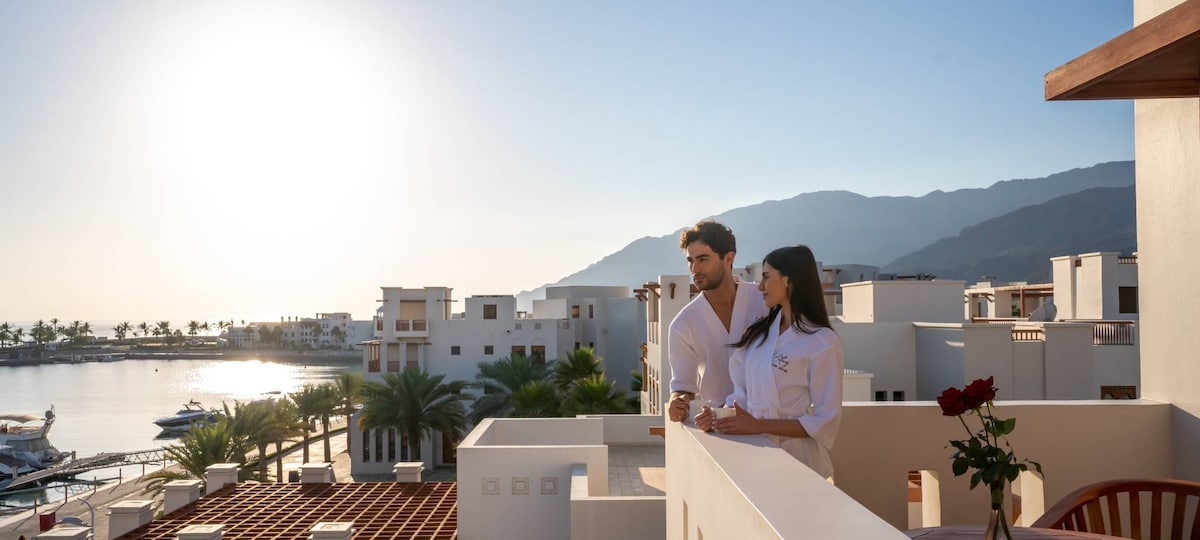 This unique one-bedroom apartment is ideally situated on the Muscat\ Al Mouj, with breathtaking sea view. ——The Space—— Quiet, clean and cozy with modern furniture's make it perfect for relaxation and enjoyment. Swimming pools, Gym, Kids play area, access to the beach, marina, cafe, shops and fine restaurants in and outdoor within the building\ area. Relax fully with top-notch amenities gym, pool, Big TV, 5G WiFi, hotel-quality linens and towels, and more right on your fingertips!