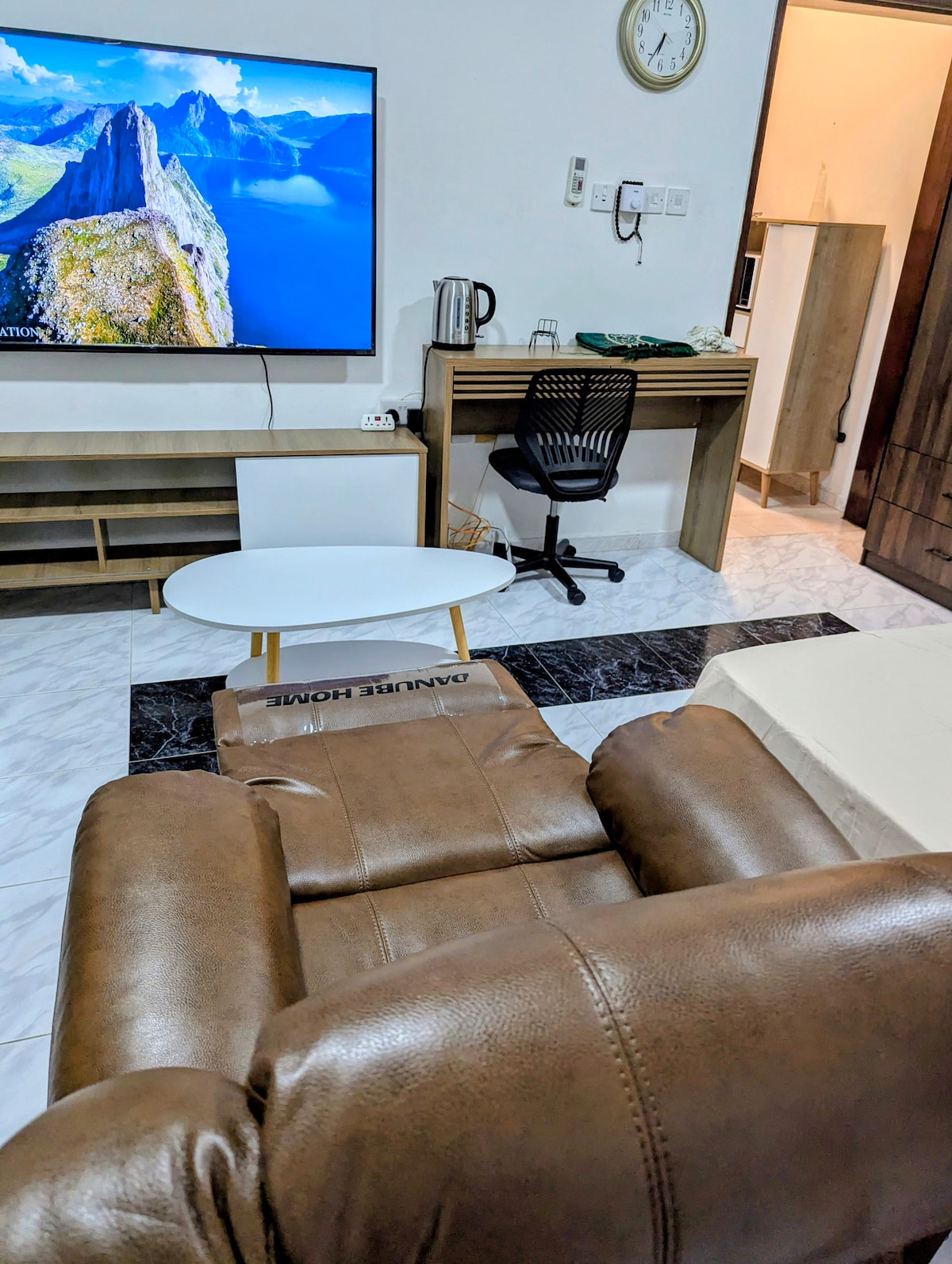 Airbnb Co-Host in Muscat I help property owners in Muscat manage their Airbnb listings. Enjoy your stay in this private studio with an independent entrance and a spacious bathroom for full comfort and privacy. It features a Queen bed, recliner chair, air-conditioning, a 65” Sony Ultra HD TV with Netflix. The kitchenette includes a Toshiba microwave, Ikon 180L fridge, and ample storage. Centrally located a few kilometers from Avenues Mall, Oman Mall, Grand Mall, the beach, and key ministries.