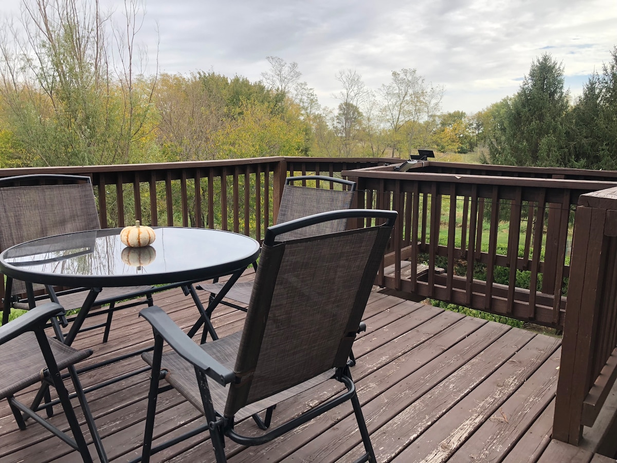 Private guest lake house, located next to main house, on private lake in the country. 2 bedroom, 1 full bath, full kitchen, washer and dryer and large attached screen porch. Private 37 acres of woods and prairie. Fishing and walking trails. Great window views of lake, woods, prairies and river valley. Please note, this guest house is located 1 mile down a county maintained gravel road. 25 minutes from Galesburg, IL, 20 minutes from Monmouth, IL and 35 minutes from Macomb, IL.