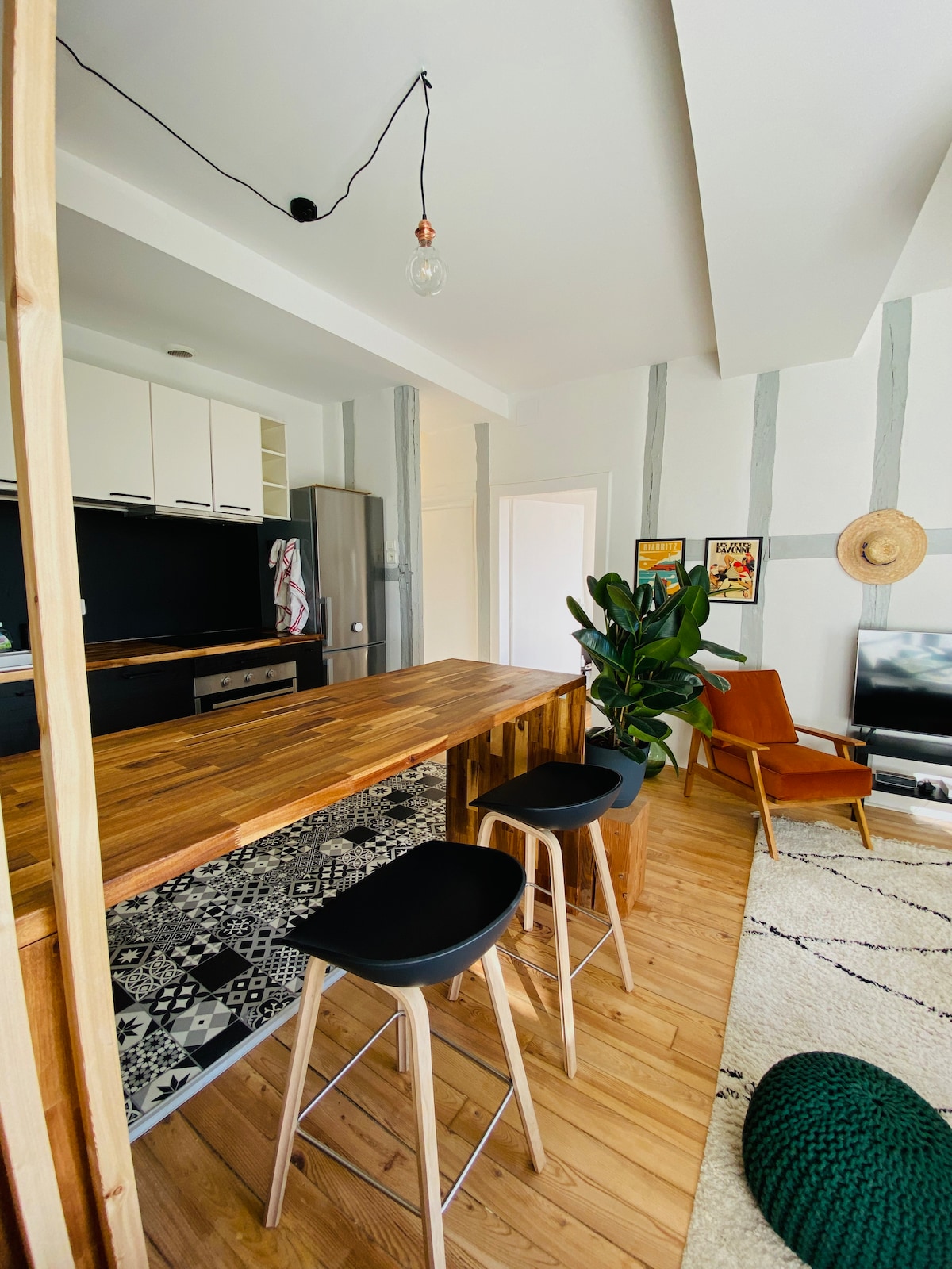 Grand T2 lumineux rénové avec soin au cœur de Bayonne. Emplacement rêvé : tout se fait à pied, des Halles aux jolies ruelles animées. Chambre Queen size, grande douche à l’italienne, cuisine équipée et bureau spacieux. Calme, charme et lumière pour un vrai cocon en plein centre. Escalier ancien, sans ascenseur au 4eme étage. Géré par ma conciergerie locale avec accueil attentionné et conseils personnalisés. ✨