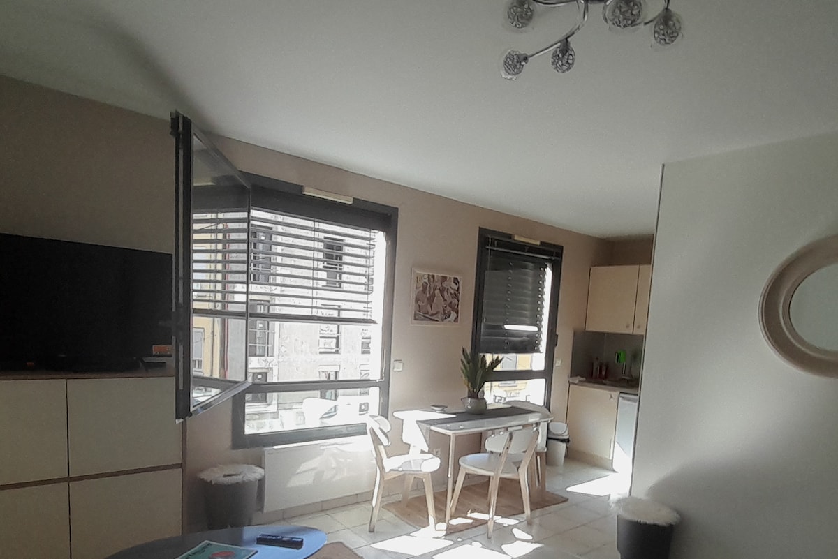 Logement F2 complet totalement équipé, lumineux, paisible et spacieux. Prix modique Entièrement neuf Bus et commerces à proximité Proche à pied de la Cité Internationale, du Parc de la Tête d'or. Stationnement gratuit assuré au pied de la propriété dans un environnement tranquille. Possibilité de quatre couchages pour 10 euros par personne supplémentaire par nuit