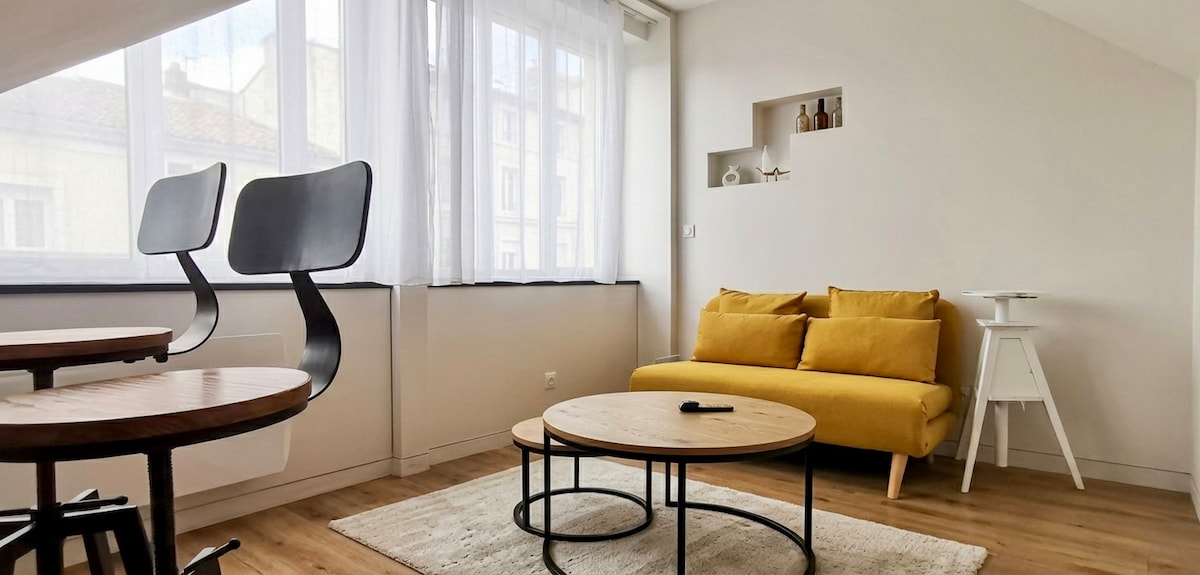 Bright 60m² apartment on the first floor, featuring a living/dining room, a fully equipped kitchen, an office, a bedroom with a 160cm bed, a bathroom and a separate toilet. Nestled in the heart of Angoulême's historic center, it offers a peaceful setting while being close to all amenities. This apartment is the perfect starting point to explore the city on foot and enjoy its many events - ideal for a true Angoulême experience!