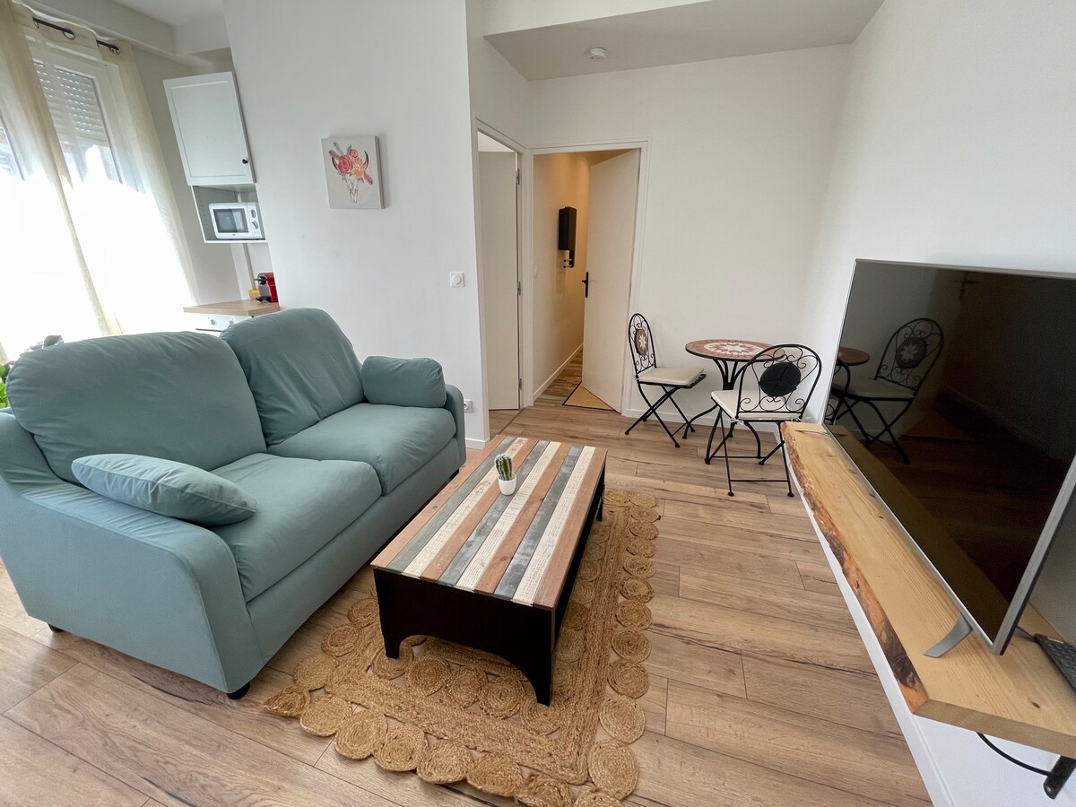 Petite rue au calme en secteur sauvegardé XVIIIe s. Grand studio 38m2 rénové au rez-de-chaussée d'un petit immeuble de 3 étages. Idéal pour 1 à 2 personnes. Belles prestations : parquet teck massif, cuisine intégrée, grand placard avec penderie, lit king size, grande douche à l'italienne, wc séparé. BAIL MOBILITE pour séjours compris entre 4 et 10 mois, conditions particulières, m'interroger.