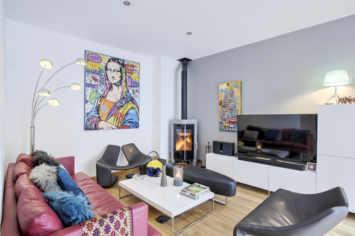 Charme et confort au deuxième étage d'un immeuble du 16ème siècle (troisième étage pour les Américains), dans une impasse calme et pourtant en plein centre de Paris. Poutres apparentes, tomettes, décoration contemporaine, oeuvres d'art du monde entier, grand séjour de 50m2, 2 chambres et 2 salles d'eau, quartier vivant et commerçant, tous transports à proximité. Fauteuil convertible en lit une place dans le salon (déplié, le lit fait 80cm x 190cm). Attention : il n'y a pas d'ascenseur.