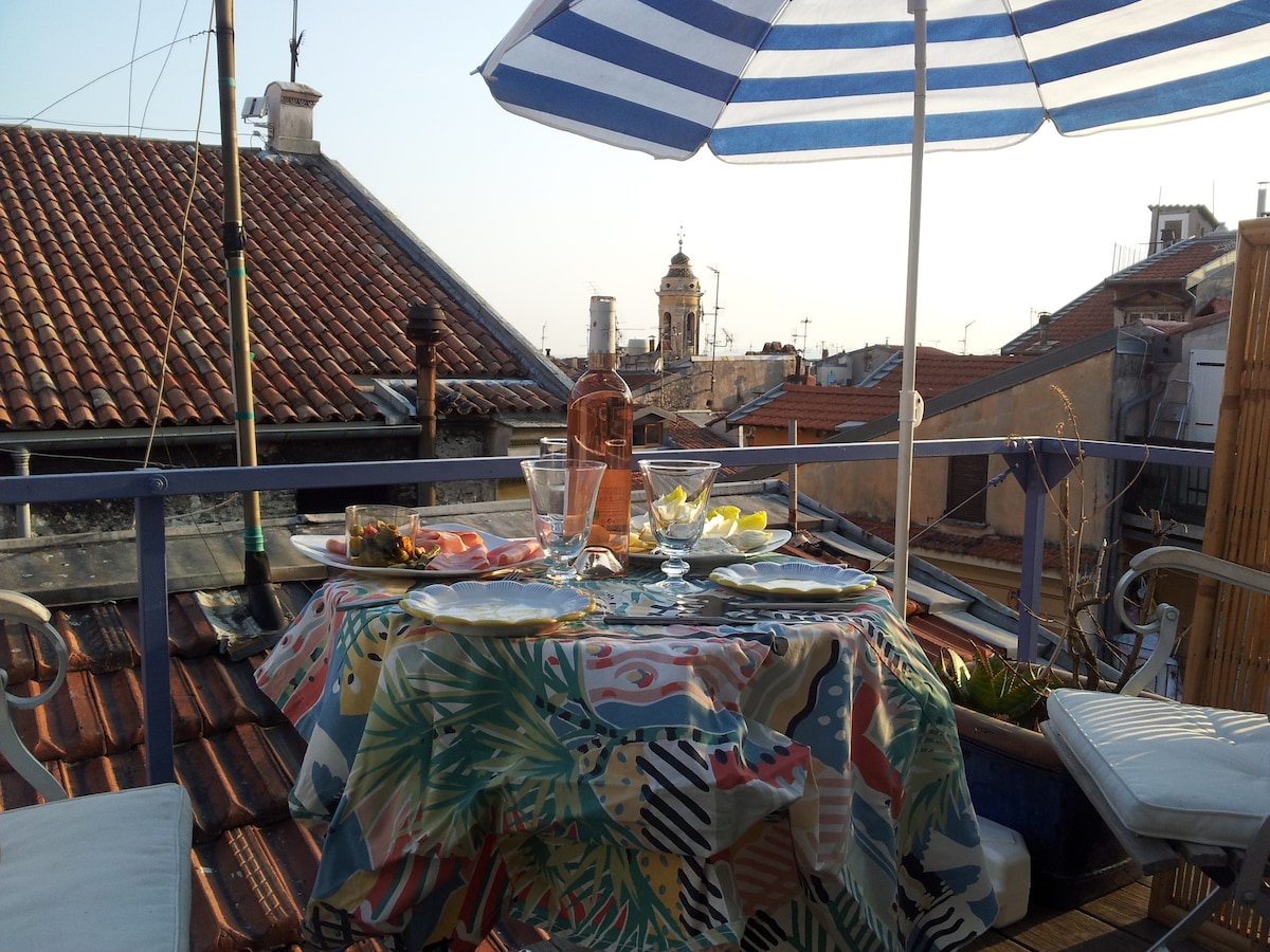 Our cosy 2 room apartment with roof terrace is located in the historical center of Nice. Here you can both: just relax after the lockdown, or start your discovery of this beautiful city. By day you can go to the beach, at night you can explore numerous small bars. We provide for you face masks and a little bottle of disinfectant for your excursions of the city.