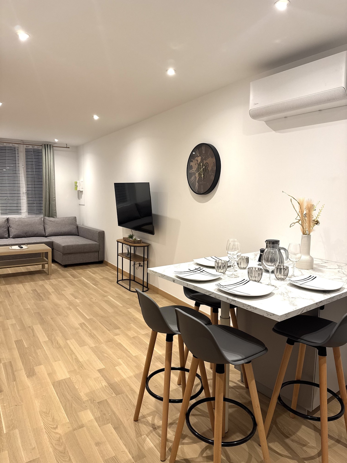 Notre appartement comprend une chambre confortable avec rangement. Une salle de bain moderne équipée d'une douche,WC, serviettes et produits de toilette essentiels. Le salon dispose d'un canapé-lit confortable (deux personnes).Connexion Wi-Fi haut débit Télévision à écran plat avec chaînes TV. Cuisine entièrement équipée. Situé à proximité des principaux sites touristiques, restaurants, boutiques et transports en commun (Gare 5min à pied).Boîte à clés sécurisée et digicode (arrivée autonome).