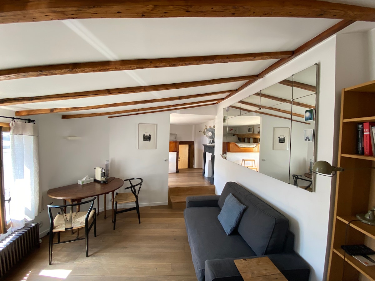 Loft with very high ceiling and a private outdoor in a courtyard garden. The private outdoor is in front of the loft. Next to the Canal Ourcq and st Martin. Ideal for singles or looking for nature and quiet in the city, Young couples on a romantic getaway. loft is fully equipped, to cook- a block away from the tube. With a bed loft, view on trees, you can hear the leaves when you wake up. No film crew or photoshoot allowed- thk you. No PRM accessibility