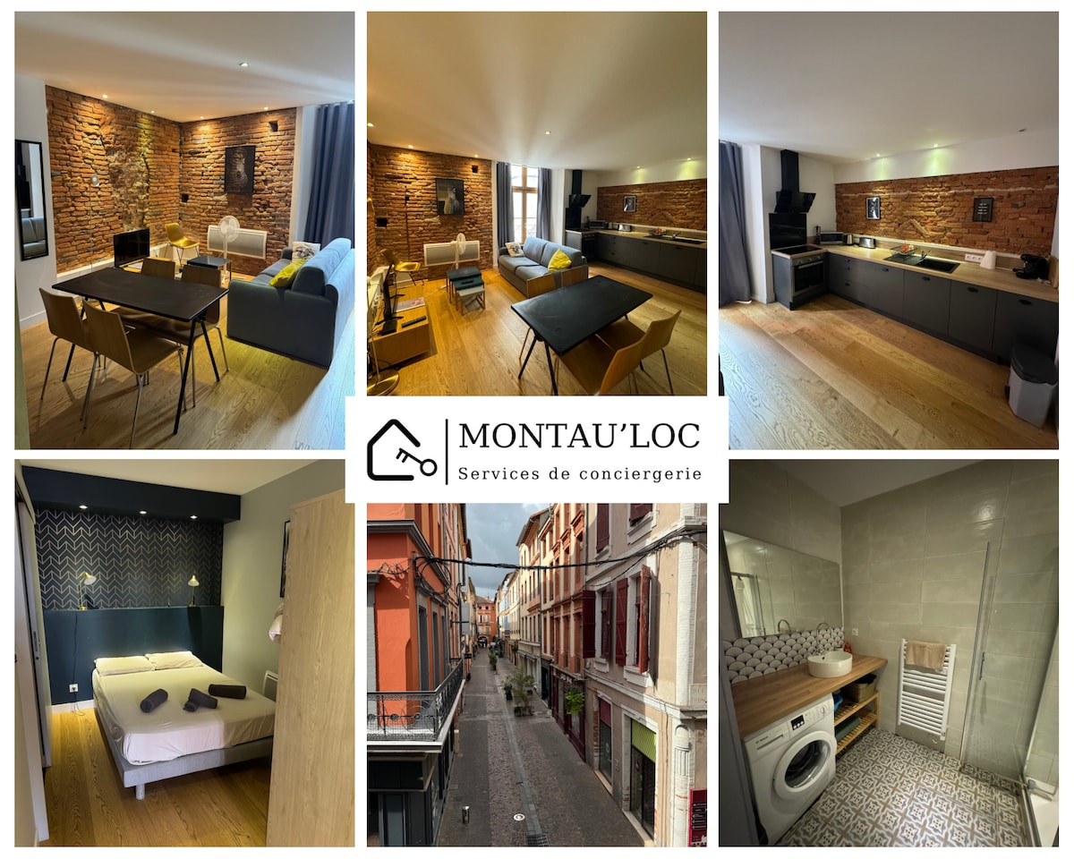 Bright and comfortable loft-style cocoon located in the very center of Montauban, at the gates of the Place Nationale. Make the most of a pleasant stay in this beautiful, completely refurbished apartment that can accommodate two people. Quiet accommodation located on the ground floor and overlooking a magnificent interior courtyard. Immediate proximity to all amenities (bakeries, restaurants, theatre, tourist sites, cafes, bookstores, hairdressers, supermarkets, grocery stores...).