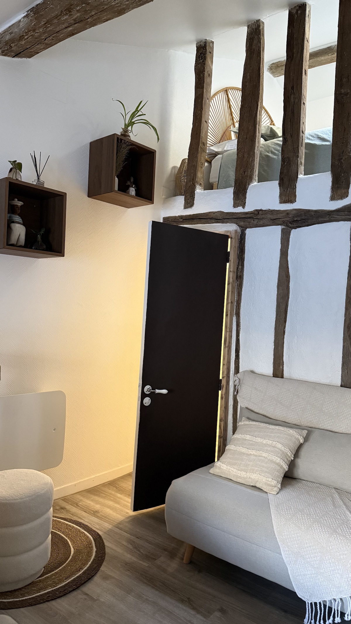 La Suite “AUX BULLES 2” allie esthétisme et romantisme, offrant un cadre de vie élégant et unique. L’architecte a mis un soin particulier dans les détails, en intégrant des matériaux de qualité et des équipements modernes. Vous pourrez vous relaxer et partager des moments privilégiés dans la baignoire balnéo double, idéale pour se détendre et se retrouver. Préparez-vous à vivre un moment inoubliable !