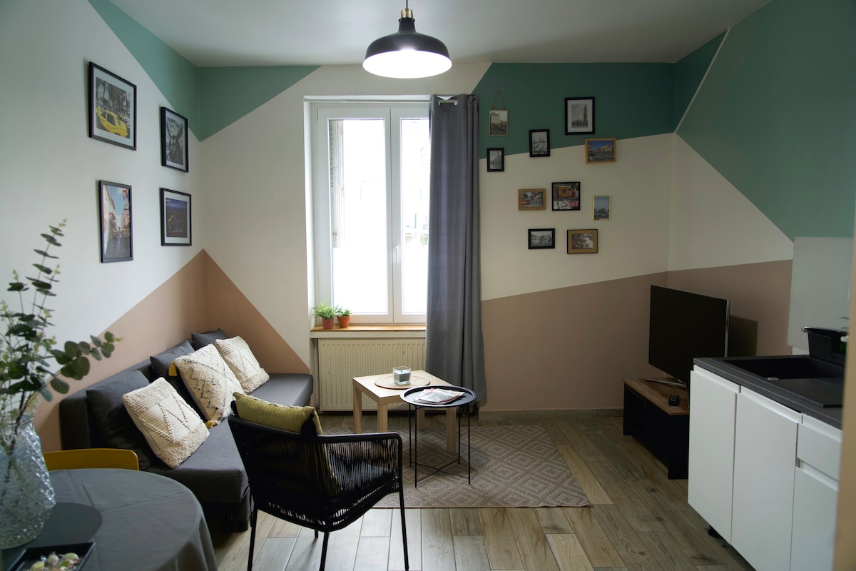 Charmant studio entièrement rénové, décoré et équipé, idéal pour un couple ou une personne seule. Le studio est composé d'une belle pièce à vivre avec cuisine, coin repas et coin salon équipé d'un canapé convertible haut de gamme pour que vous puissiez disposer d'un vrai canapé et d'un vrai lit, internet et abonnement Netflix inclus. Le centre historique 500 m à pied, la gare de Mulhouse à 15 minutes à pied, tram, bus, commerces à 300m et la proximité des axes routiers.