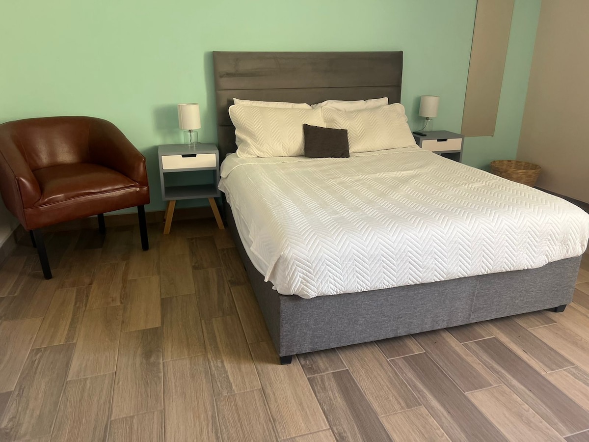 Céntrico estudio en edificio de reciente construcción que integra algunos vestigios históricos. Con una excelente ubicación, a dos calles y media de la Catedral de Puebla, es el lugar ideal para recorrer el bello centro histórico. Cuenta con amenidades compartidas: carril de nado climatizado con calentadores solares y terraza con hermosas vistas. Para estancias largas está incluida la limpieza del estudio y cambio de toallas y sábanas una vez por semana.