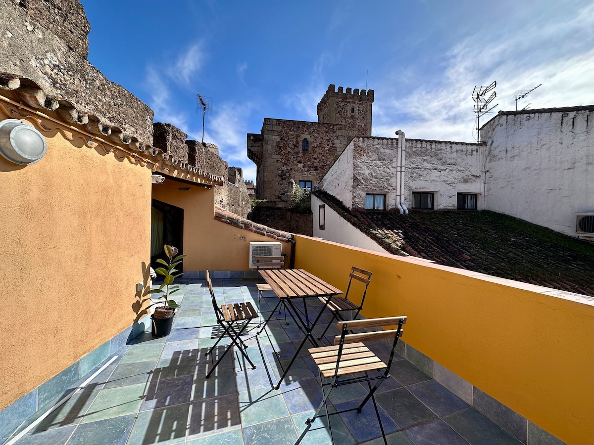 Apartamentos Plaza Mayor 35 is the ideal option for travelers interested in getting to know the Monumental Complex of Cáceres. We offer 10 unique apartments located in the Plaza Mayor de Cáceres, two steps from one of the most complete urban complexes of the Middle Ages in the world.The apartments are located in acozy manor house completely renovated with free Wi-Fi, air conditioning hot/cold, fully equipped kitchen, large living room with sofa bed, comfortable rooms and bathroom with shower.