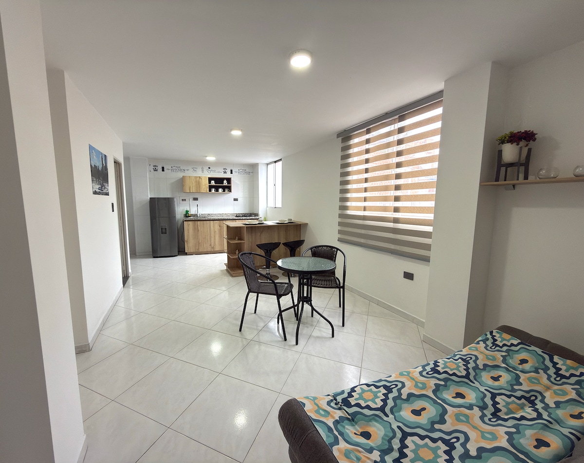 This centrally located apartment is ideal to enjoy a pleasant stay if you are traveling for tourism or work, has a capacity for 4 people in two rooms, the main room has a double bed, the additional room has a single bed and two comfortable sofa beds in the living room, fully equipped kitchen and bathroom with hot water. It has an excellent movistar Internet bandwidth 300 Mpbs, cable TV, netflix, work furniture and is located a few minutes from the sites of interest in the city.