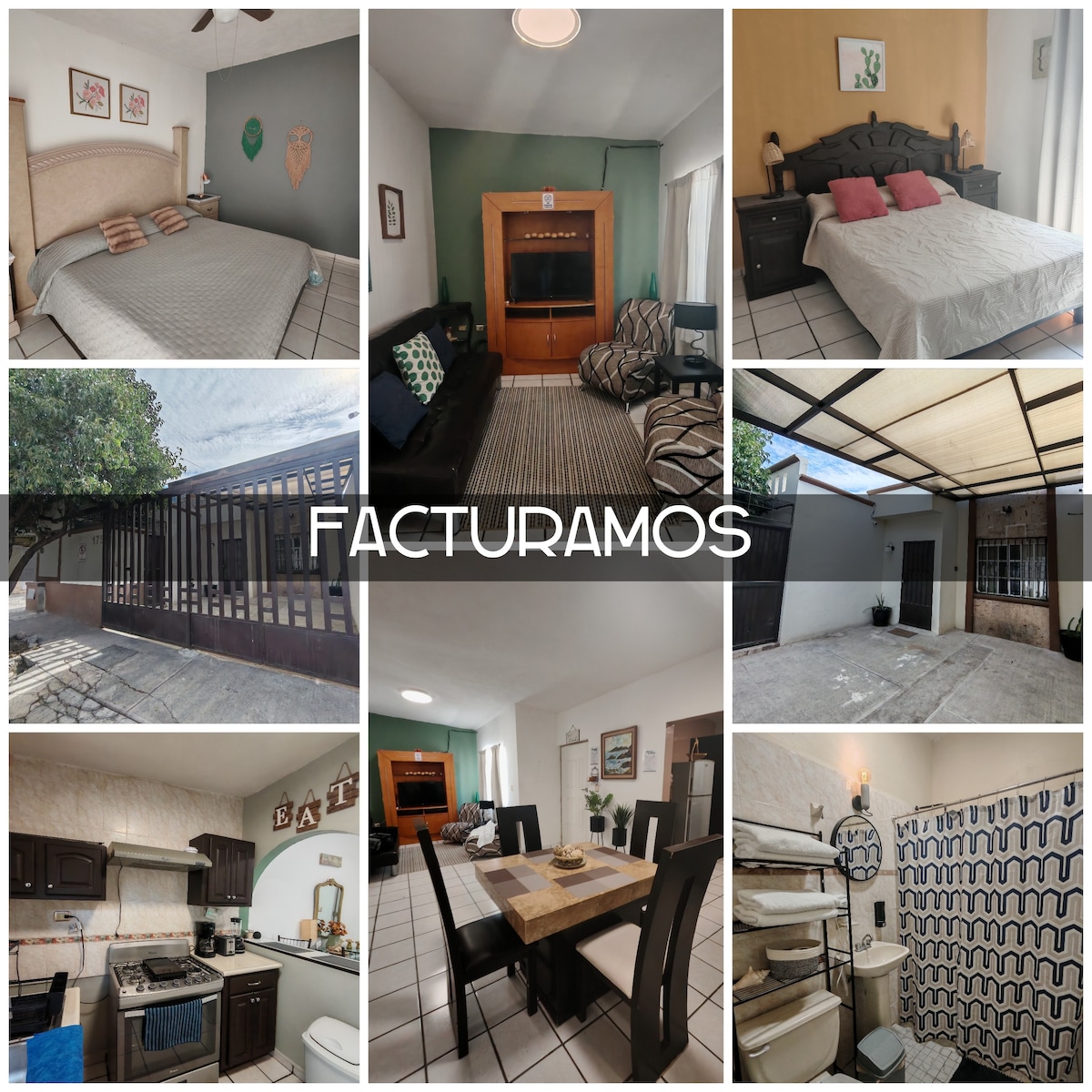 Relájate con la familia o amigos en este alojamiento cómodo y agradable. Cuenta con todo lo necesario para hacer tu estadía inolvidable. Ubicada muy cerca de avenidas principales y centros comerciales, en una zona muy segura y tranquila. Cuenta con cochera techada y patio para hacer carnes asadas. Dos habitaciones amplias con camas matrimonial y king size y un sofá cama, pantallas con Netflix activado en cada habitación y en la sala. Cocina equipada, sala, comedor y baño completo.