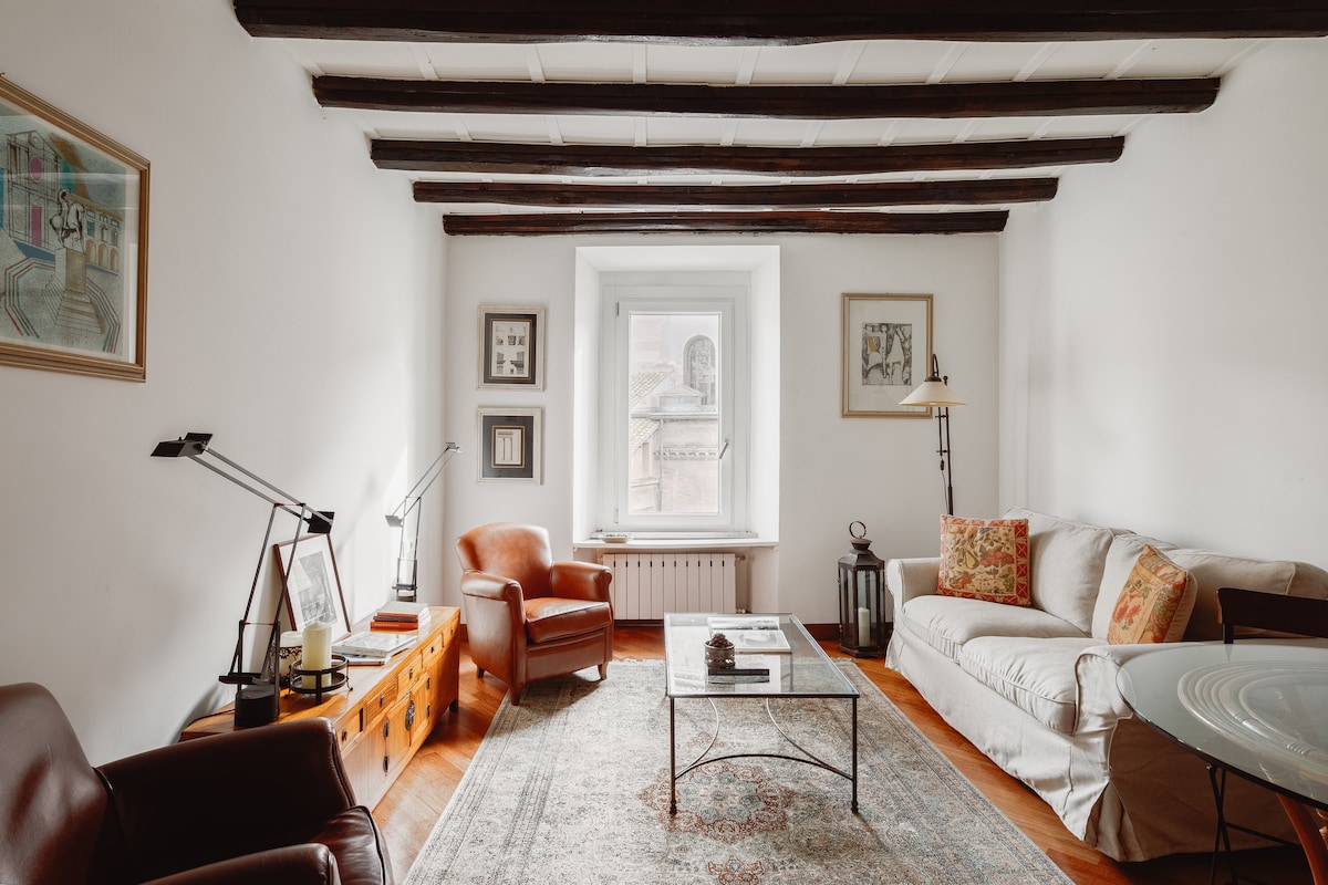 This delightful boutique apartment, located in an authentic 17th-century building, is the perfect retreat for couples and travelers seeking an intimate, authentic, and deeply Roman experience. The private panoramic terrace on the same level allows you to admire the city from above and feel connected to its truest soul, right in the heart of the historic center. A place designed to share emotions, relaxation, and small everyday rituals, while feeling completely at home.