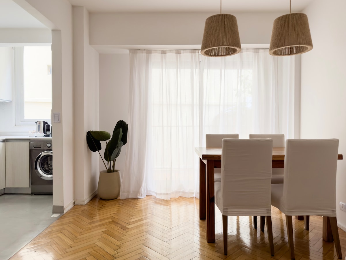 Departamento moderno y luminoso en Palermo Chico. Dos habitaciones (cama queen y cucheta), 1 baño completo + toilette, cocina equipada, balcón y ropa de cama incluida. Aire acondicionado, Wi-Fi, TV con Netflix, lavarropas. Seguridad 24 hs. Check-in 13hs, check-out antes de las 11, pero ambos son flexibles y autónomos. — Modern and bright apartment in Palermo Chico. 2 bedrooms, full kitchen, balcony, Wi-Fi, A/C, Netflix. 24/7 security. Flexible & self check-in 1 pm, check-out before 11 am.