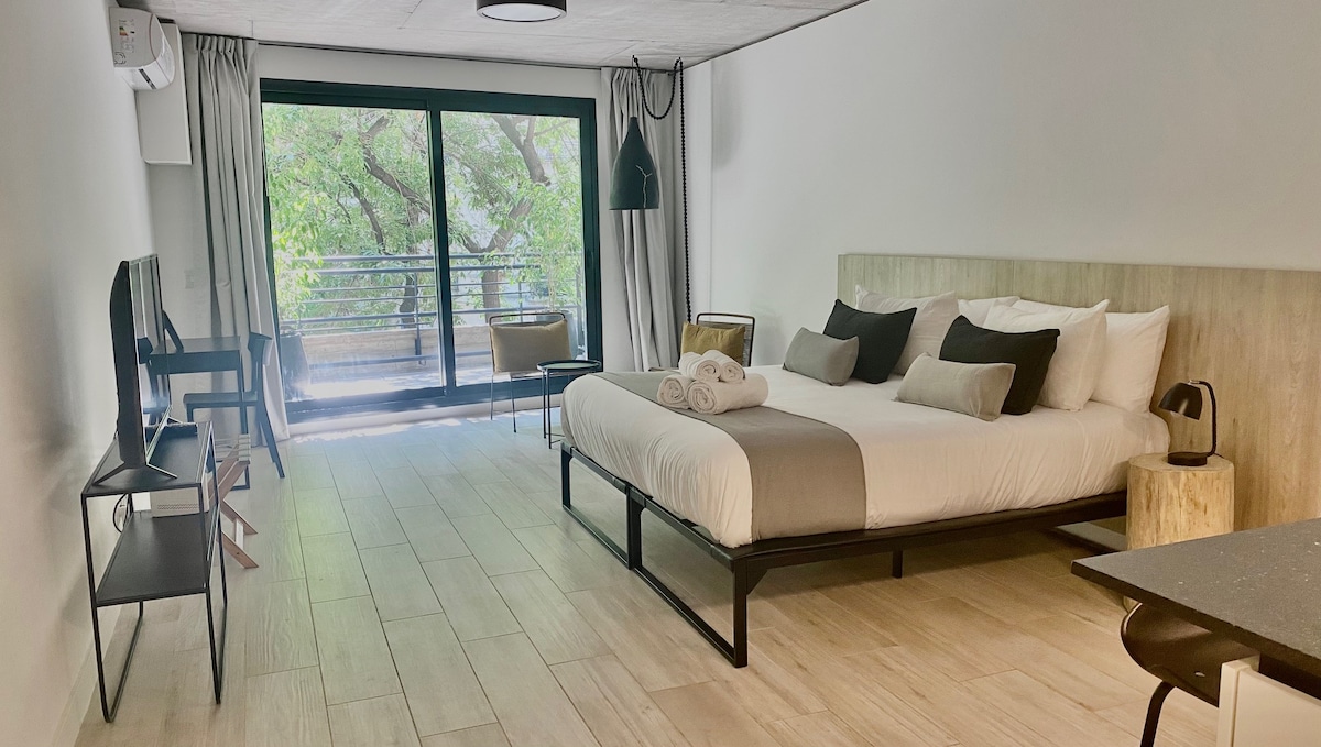 Departamento con vista al Jardín Botánico, ubicado en una zona privilegiada de Palermo sobre la avenida Las Heras, cerca de todo. Su ambientación de estilo contemporáneo y su equipamiento completo están pensados para que te relajes y disfrutes de tu estancia, ya sea que nos visites por trabajo o por vacaciones El mismo incluye, entre otros aspectos, aire aconodicionado y Smart TV en living y dormitorio, electrodomésticos y untensillos de cocina, lavarropas e internet por fibra 200M.