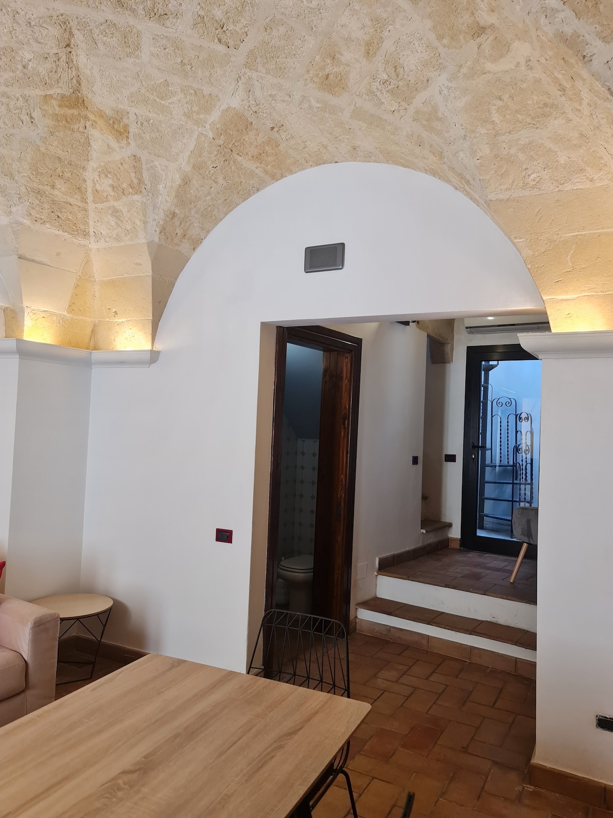 Piccolo appartamento a piano terra, facente parte di un palazzo del ‘500, situato in una corte a 100 metri da Piazza Sant’Oronzo. L’appartamento è composto da angolo cottura attrezzato con forno a microonde, frigorifero e piano cottura a induzione, una camera da letto matrimoniale, ampio bagno completo di doccia e asciugacapelli. Possibilità di utilizzare anche un divano letto. L’appartamento è coperto da WiFi gratuito, televisore a schermo piatto, termocamino e climatizzatore d’aria.
