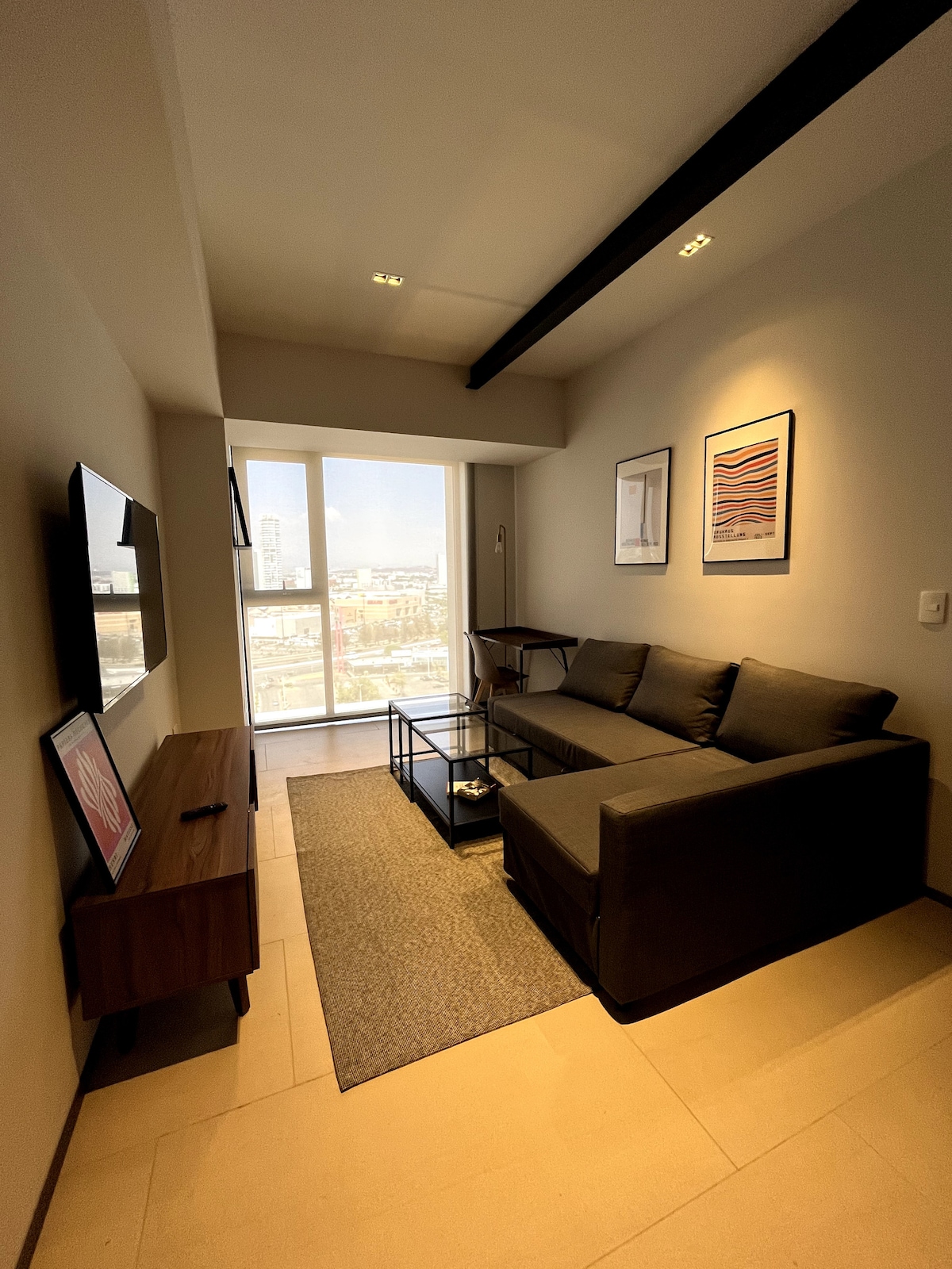 Hola! Este departamento está pensado para disfrutar de la mejor zona de la ciudad , justo frente a la plaza comercial Angelópolis y El palacio de hierro. Rodeado de centros comerciales, cafés, bares, antros y restaurantes y con amenidades de lujo para hacer de tu estancia una visita excepcional, solo, en pareja o en grupo, disfruta de la comodidad, el lujo y la seguridad de las Torres Boudica.