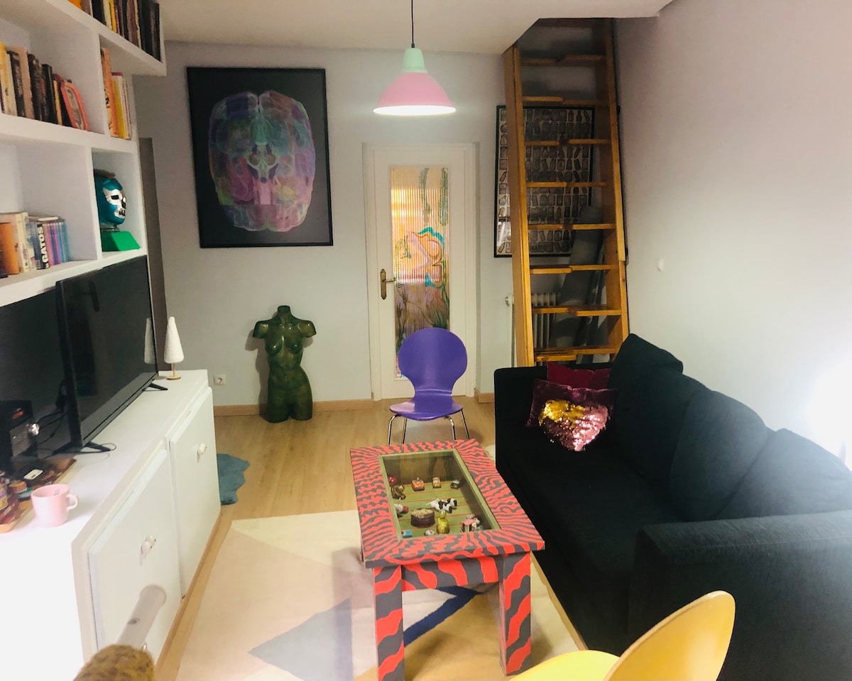 Cosy, fully equipped studio in a traditional early 20th-century Madrid corrala. For NOT EXCLUSIVELY TOURISTIC temporary stays only – PLEASE READ THE DESCRIPTION BEFORE BOOKING. Superb central location, near Reina Sofía and Prado. Quiet area with shops and restaurants. Just 4 min on foot to Estación del Arte and Antón Martín (metro stations), 10 min to Atocha Station (direct airport link), and close to bus stops serving the whole city.