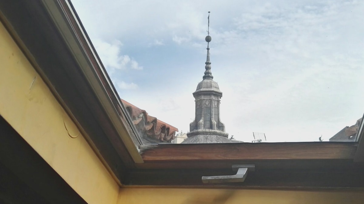 Attic apartment for 2 people, with 1 bedroom and Jacuzzi, 1 bathroom, kitchen and dining room and all the comforts of a home, full of positive energy and personality, integrated in a protected building from 1846, located in the Malasaña neighborhood, one of the most central, bohemian and cool neighborhoods in Madrid. An ideal refuge for romantic getaways as a couple or for executives looking to unwind and relax after a busy day in cosmopolitan and bohemian Madrid.