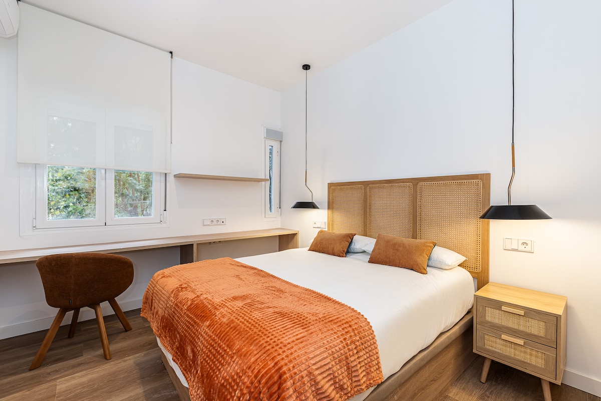 Alojamiento en Chamberí con habitaciones privadas y baño en suite. Disfruta también de una terraza común con comedor y salón exterior. Accommodation in Chamberí with private rooms and en-suite bathrooms. Enjoy a shared terrace with dining and lounge areas. Hébergement à Chamberí avec chambres privées et salle de bain attenante. Profitez aussi d’une terrasse commune avec coin repas et salon extérieur.