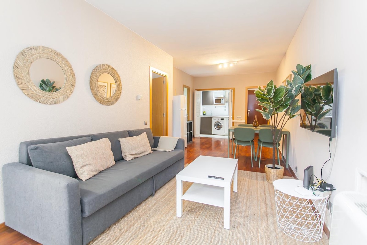 This beautifully designed apartment combines comfort and style, making it ideal for up to 4 guests. The apartment features bedroom, bathroom, a cozy living room with a sofa bed and TV, as well as a fully equipped kitchen and dining table - perfect for a relaxing and comfortable stay. Conveniently located just a short drive from Madrid Airport and only a 5-minute walk from the Planilonio Shopping Mall. It also offers excellent proximity to IFEMA Convention Center and the Metropolitano Stadium.