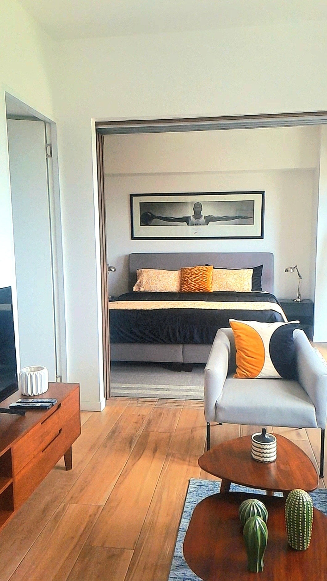 位置优越的单间公寓,配备加大双人床