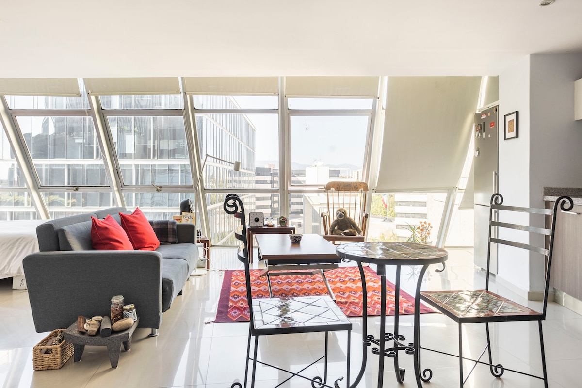 Hermoso Loft equipado y muy iluminado. Ideal para parejas o personas que viajan solas A unos pasos de Polanco y del centro comercial Parques Polanco Super seguro, vigilancia 24/7 y circuito cerrado. Espectaculares amenidades: Alberca, Gimnasio, Cuarto de Niños y hermosos jardines.