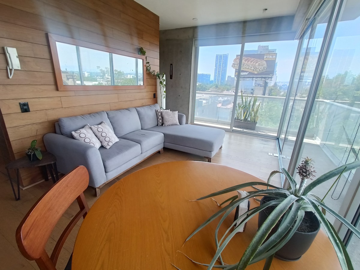 Welcome to my beautiful loft with the best view of Mexico City, located in the famous Colonia CONDESA. Very secure building with 24-hour Guards. Nearby subway stations: Juanacatlán & Chapultepec. Elegant apartment with KING-size bed, private bathroom, and a huge balcony with beautiful plants and cactus. Perfect location for tourists and business travelers. Many museums nearby, and Reforma Avenue is just a 10-minute walk away. Note: Condesa is a lively and noisy neighborhood — KEEP IN MIND!