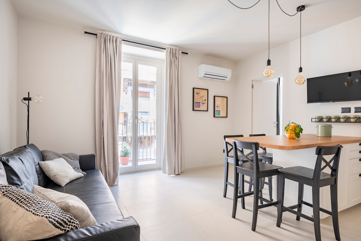 Located just 200 meters from the main square, the apartment is a peaceful retreat in the heart of Catania. Perfect for couples, travelers, and smart workers looking for comfort, style, and a central location to explore the city on foot. Bright and spacious, it features a comfy King Size bed, fully equipped kitchen (microwave, coffee machine, etc.), washing-machine & detergents, ultra-fast Wi-Fi, air conditioning, independent heating, and a 42’’ TV with Netflix and Prime Video included!
