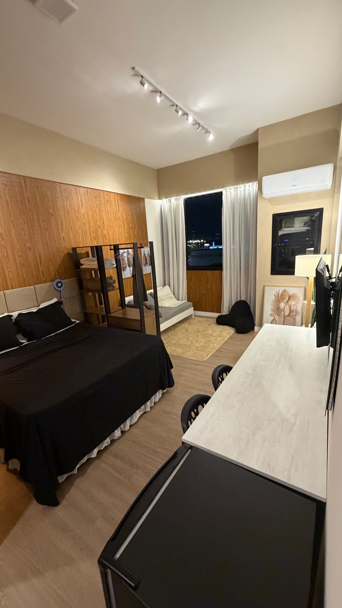 Studio Master Loft moderno e bem equipado, localizado de frente para o encontro do Rio Sergipe com o mar. Ambiente integrado, climatizado, com cama confortável, sofá, TV e iluminação aconchegante. Cozinha completa com cooktop, airfryer ,micro-ondas, geladeira , cafeteira e filtro de água. A bancada também funciona como home office. Vista aberta e inspiradora. Ideal para casais, viagens a trabalho ou lazer em Aracaju.
