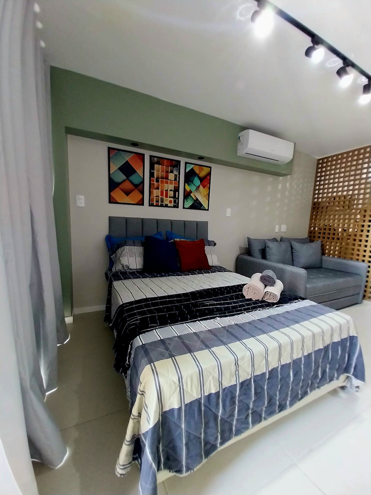 Conforto elegante, localização estratégica e lazer completo. Tranquilo com requinte e conforto. Bem-localizado. Cuidadosamente preparado para uma estadia acolhedora e funcional. 🛏️ Camas • Quarto: 1 cama de casal, ideal para 2 hóspedes • Sala: 1 sofá-cama queen, acomodando até 2 hóspedes • Criança: colchão infantil para bebê de até 3 anos (disponível mediante solicitação na reserva) 🧡 Capacidade até 4 hóspedes, conforme acima. ☕ Adicional • Espumador de leite Aeroccino (mediante solicitação)