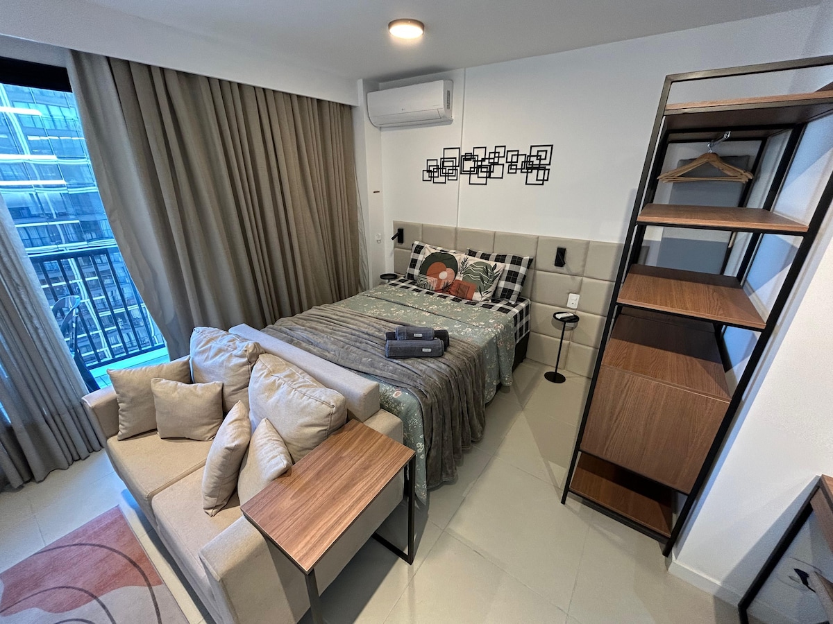Well-maintained studio in a modern building with pool, BBQ area and gym. Features a queen-size bed, Wi-Fi and a balcony with evening sun and a beautiful view of the Arcos da Lapa. Walking distance to: – 5 min: Cinelândia Metro, Catedral Metropolitana, Selarón Steps, Santa Teresa Tram & Municipal Theater – 15 min: Confeitaria Colombo, Praia do Flamengo & Aterro do Flamengo In the evening, enjoy the vibrant nightlife of Lapa with samba bars and clubs just around the corner.