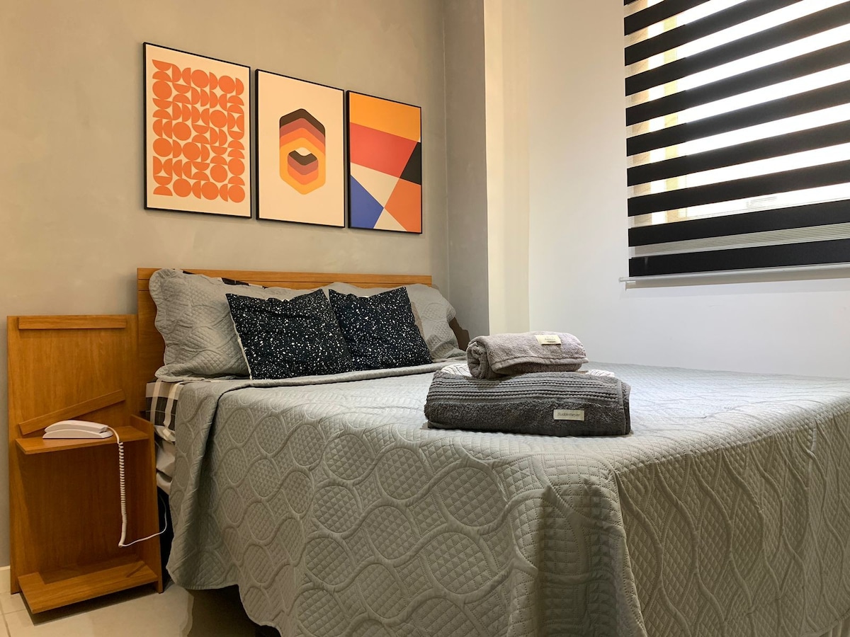 Nosso Flat Suíte está localizado em um Prédio refinado e moderno, com Piscina, Academia, Lavanderia, Mercado interno, Sala de Jogos, Áreas comuns muito confortáveis e elegantes. A Suíte dispõe de uma Cama de Casal, Armário, Frigobar, Ar Condicionado, Micro-ondas, Cafeteira, Sanduicheira, Mesa para refeições e trabalho, Roupas de Cama e Banho, Secador de Cabelo, Ferro de Passar a Vapor, etc.. Um quartinho aconchegante e charmoso para você passar dias deliciosos no Centro do Rio de Janeiro!😎🏖